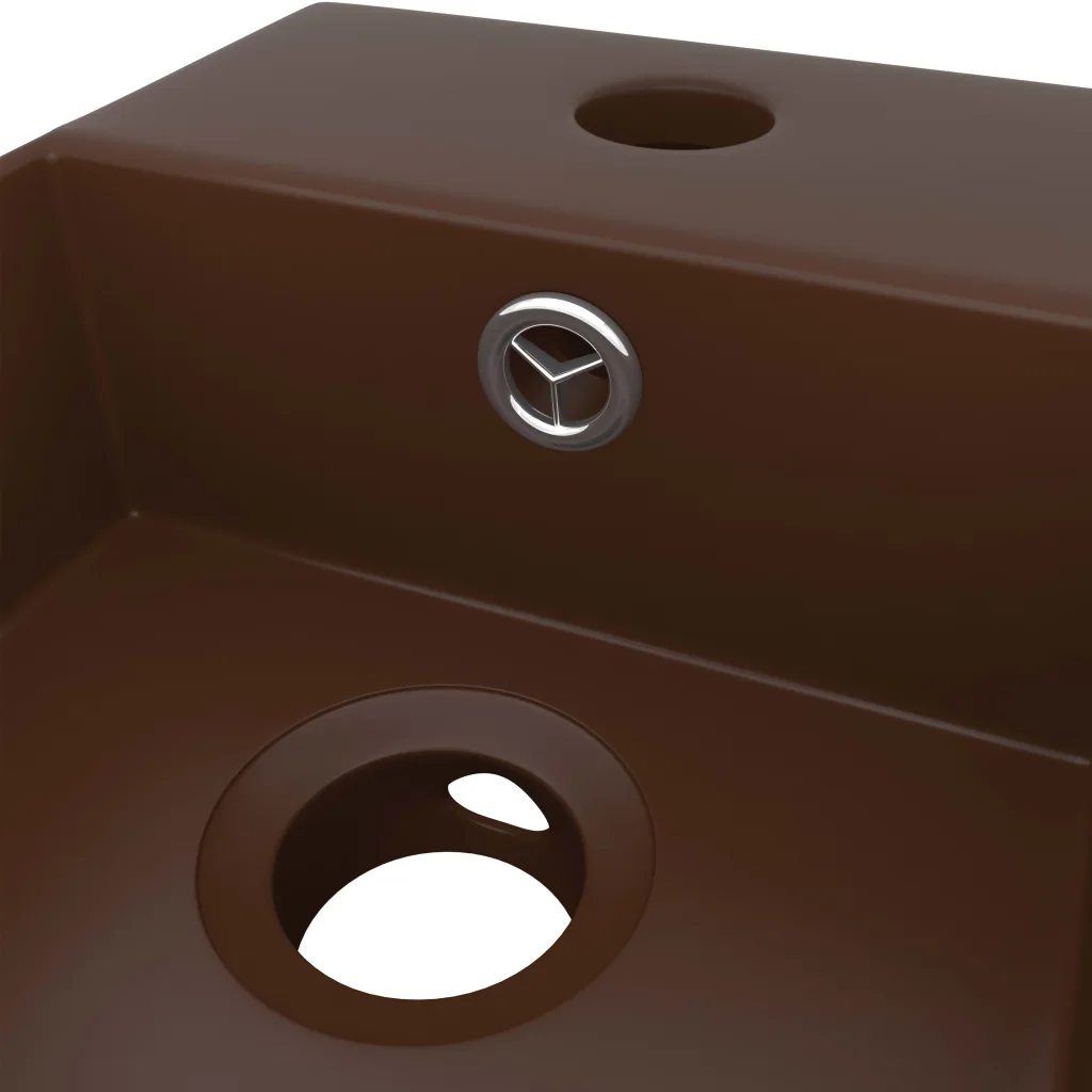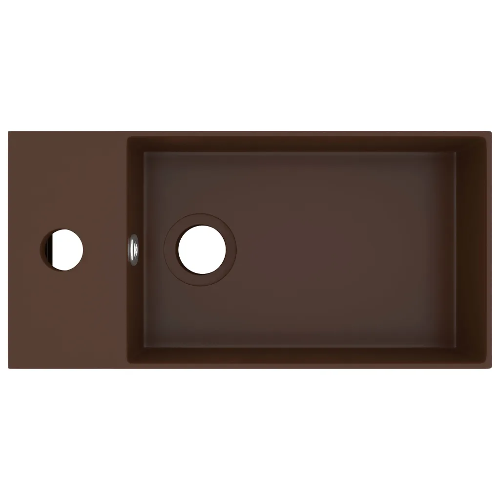 See tumepruun keraamiline vannitoa valamu toob pesuruumi modernse ilme ning sobib hästi nii vannituppa, jumestustuppa, kööki kui ka töökohale. Matt täiskeraamikast pind on sile ja lihtsasti puhastatav, muutes igapäevase hoolduse kiireks ja mugavaks.