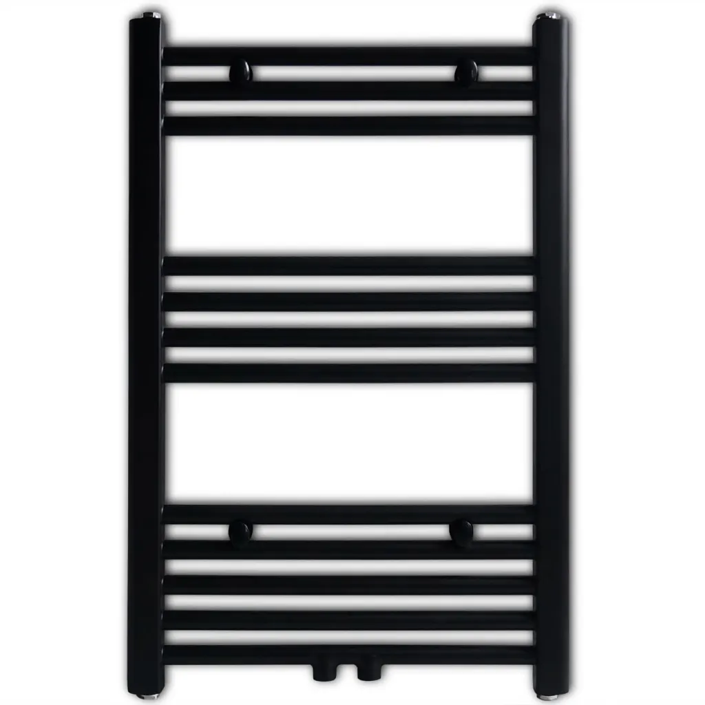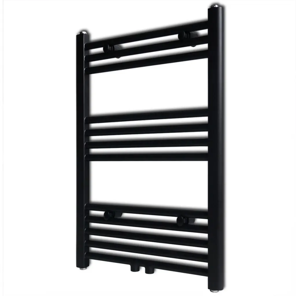 See keskkütte vannitoa rätikukuivati-radiaator hoiab ruumi meeldivalt soojana ja aitab rätikuid kiiresti kuivatada. Mustast terasest sirge disain sobitub kaasaegsesse vannituppa, mõõdud 500 x 764 mm tagavad, et rätikukuivati mahub ka piiratud seinapinnale. Seinale kinnitatav mudel kasutab soojusallikana kuuma vett, mitte elektrit.
