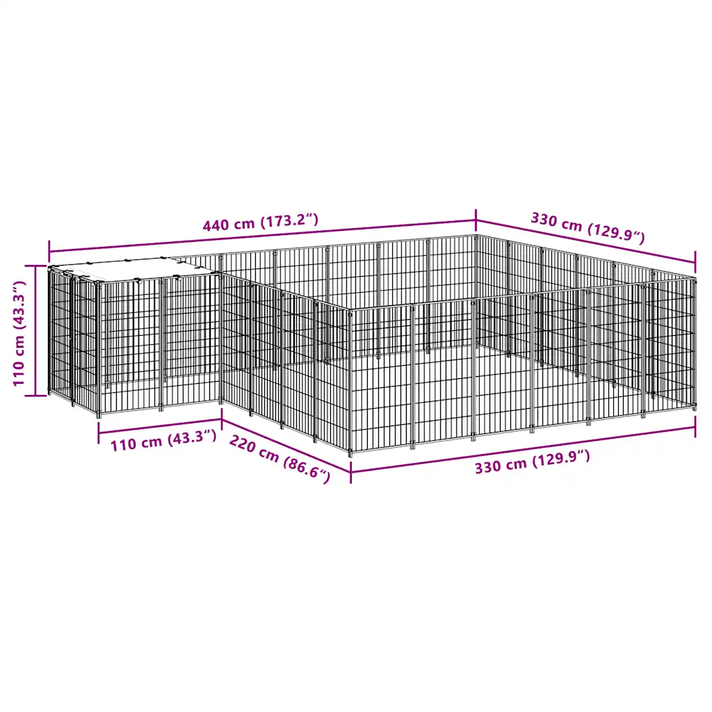• Suure pindalaga aedik – kogumõõtmed 440 x 330 x 110 cm (P x L x K) pakuvad koerale rohkelt liikumisruumi õues.