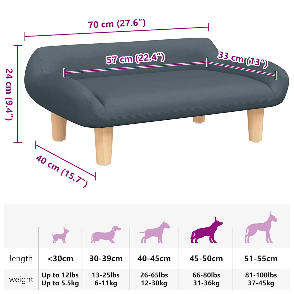See stiilne koeradiivan väikestele koertele loob sinu lemmikule sooja ja mugava puhkenurga. Tumehall kangas ja puidust jalad sobituvad kergesti eri sisekujundusega, pakkudes samal ajal kindlat tuge ja hubast magamiskohta.