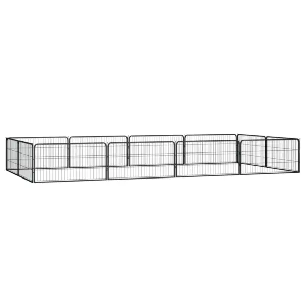 See 12-paneeliline koerte mänguaed pakub koertele ja kutsikatele eraldatud ala mängimiseks, puhkamiseks ja treeninguteks nii koduaias kui ka professionaalses koerakasvatuses. Pulbervärvitud terasest konstruktsioon on vastupidav ja madala hooldusvajadusega, pakkudes samal ajal hea nähtavuse ja ventilatsiooni. Tänu mitmest paneelist koosnevale süsteemile saate mänguaia kooslusena paigutada erineva kuju ja suurusega alaks, mis sobib teie ruumiga.