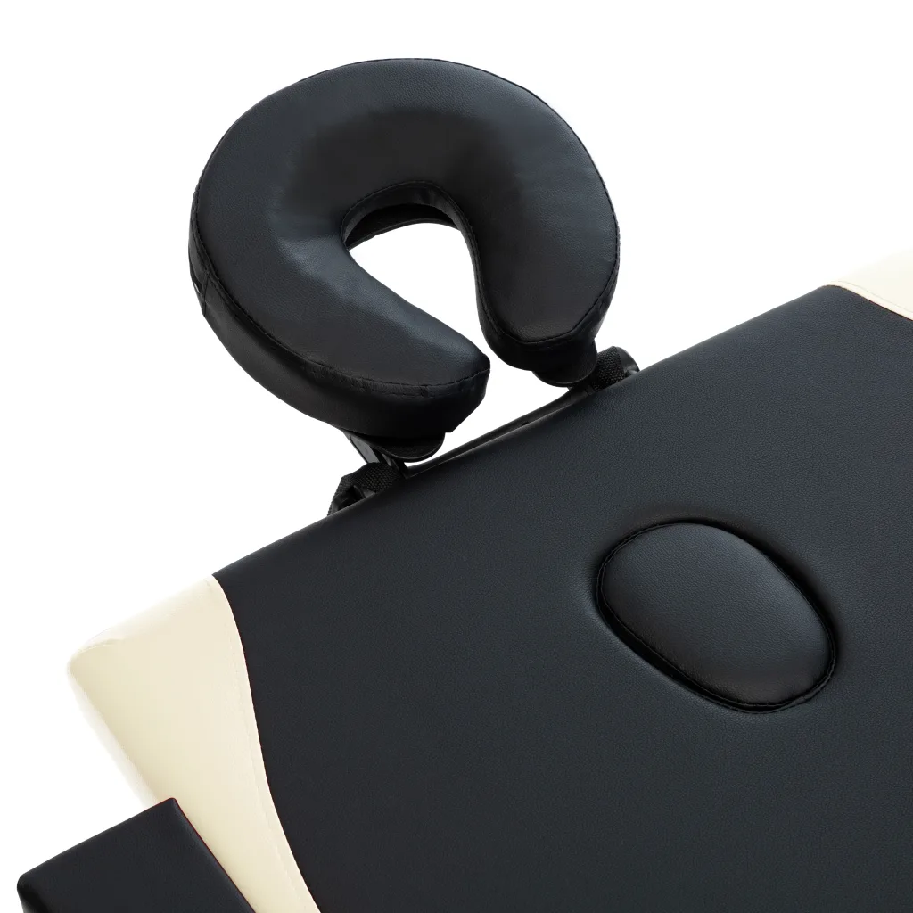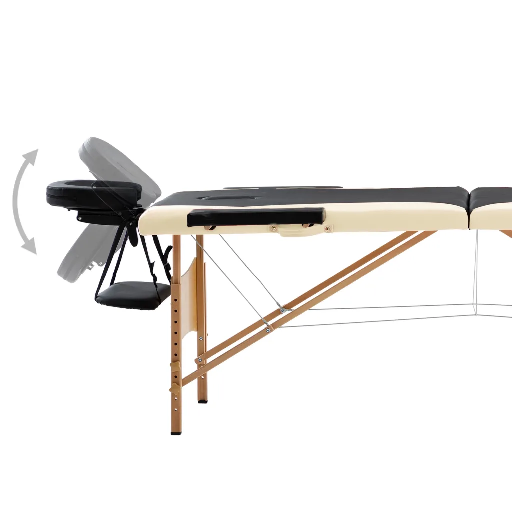 See kokkupandav 2-tsooniline massaažilaud puidust raamiga sobib nii asjaarmastajatele kui ka professionaalseks kasutamiseks. Laual on musta ja beeži tooniga kunstnahast kate, mis koos 30 mm paksuse vahust polsterdusega tagab kliendile mugava lamamisasendi. Reguleeritav kõrgus, peatugi ja käetoed võimaldavad massööril kohandada lauda vastavalt iga kasutaja vajadustele, samal ajal kui kaasas olev kandekott muudab laua lihtsasti transporditavaks ja hoiustatavaks.