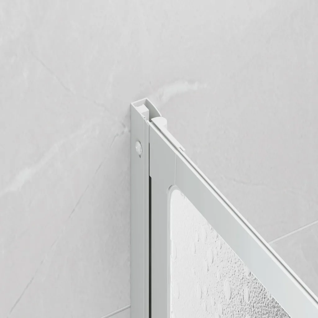 - Valge alumiiniumraam PP-plaadiga – tagab stabiilsuse ja kerge konstruktsiooni, mis sobitub erinevate vannitoasisustustega.