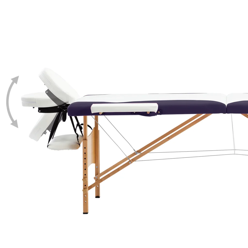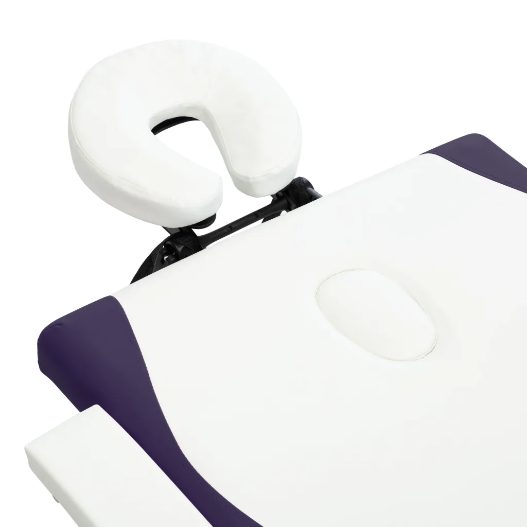See kaheosaline kokkupandav massaažilaud sobib nii asjaarmastajale kui ka professionaalseks kasutamiseks. Puidust raam koos vineeriga tagab stabiilsuse, samas kui 30 mm paksune poroloonpehmendus ja valge ja lilla kunstnahast kate pakuvad kliendile mugavat lamamispinda. Laud on kergesti kokkupandav ja tänu kaasas olevale kandekotile mugavalt transporditav ning hoiustatav.