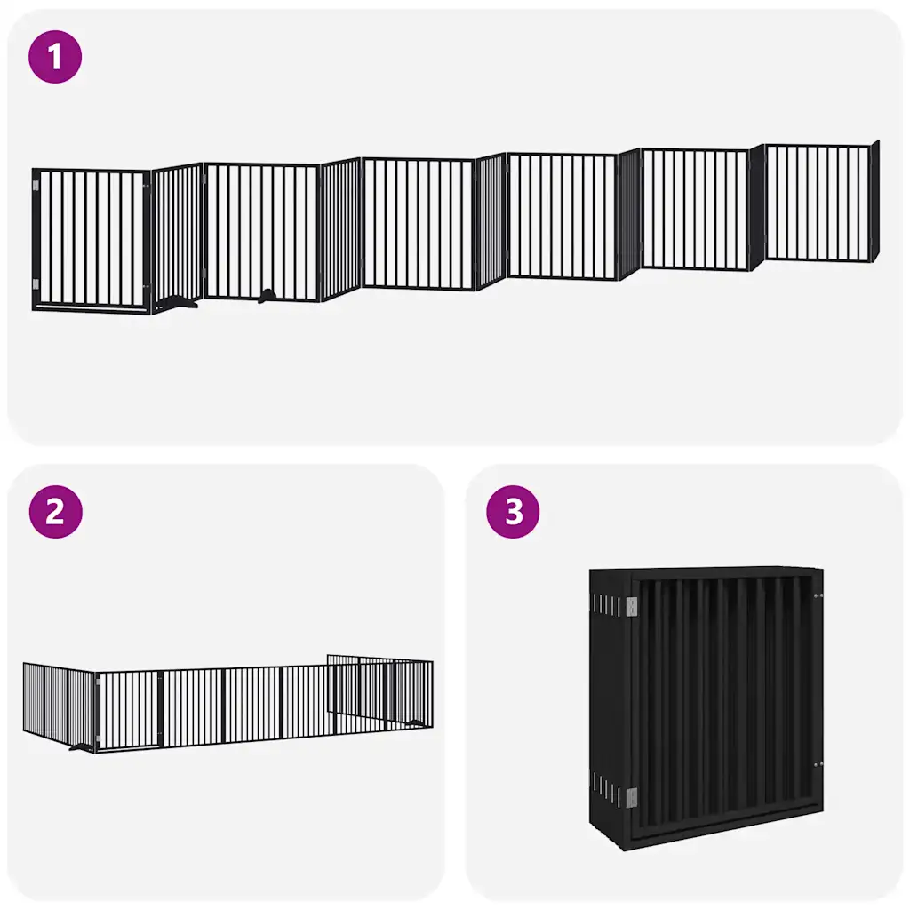 See mustast paplipuidust kokkupandav koeravärav aitab hoida väikeseid ja keskmisi koeri kindlalt määratud alal, vähendades samal ajal häirimist ja segadust kodus. Eraldiseisev 12-paneeliline süsteem ulatub kuni 960 cm pikkuseni, mistõttu sobib see elutuppa, kööki, trepiavasse või ukse ette, kus on vaja kiiresti ja paindlikult ruumi piirata.
