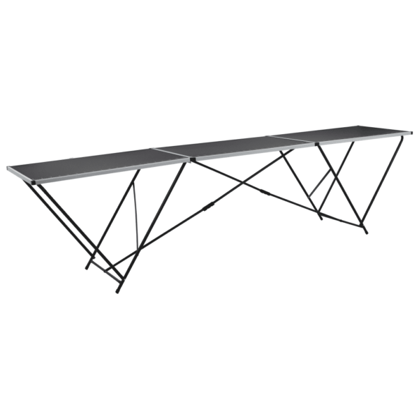See kokkupandav kolmeosaline tapeetimislaud pakub praktilist tööpinda tapeedi liimimiseks, kodu kaunistamiseks ja erinevateks meisterdamistöödeks. Küljel asuv mõõdulint aitab materjale täpselt mõõta, samal ajal kui kerge alumiiniumraam ja MDFist lauaplaat tagavad töö ajal stabiilsuse. Laud avaneb täissuurusesse 300 x 60 x 78 cm, kuid kokku panduna võtab vähe ruumi ja on lihtne kaasa võtta.