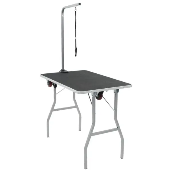 See kokkupandav ratastega trimmimislaud koertele teeb pesemise, pügamise, trimmimise, kammimise ja kuivatamise mugavaks ning ohutuks. Libisemisvastase pinnaga töölaud ja roostevabast terasest pide reguleeritava aasaga aitavad hoida lemmiku kindlalt paigal, samal ajal kui tugev konstruktsioon ja ratastega alus lihtsustavad laua liigutamist ja hoiustamist.