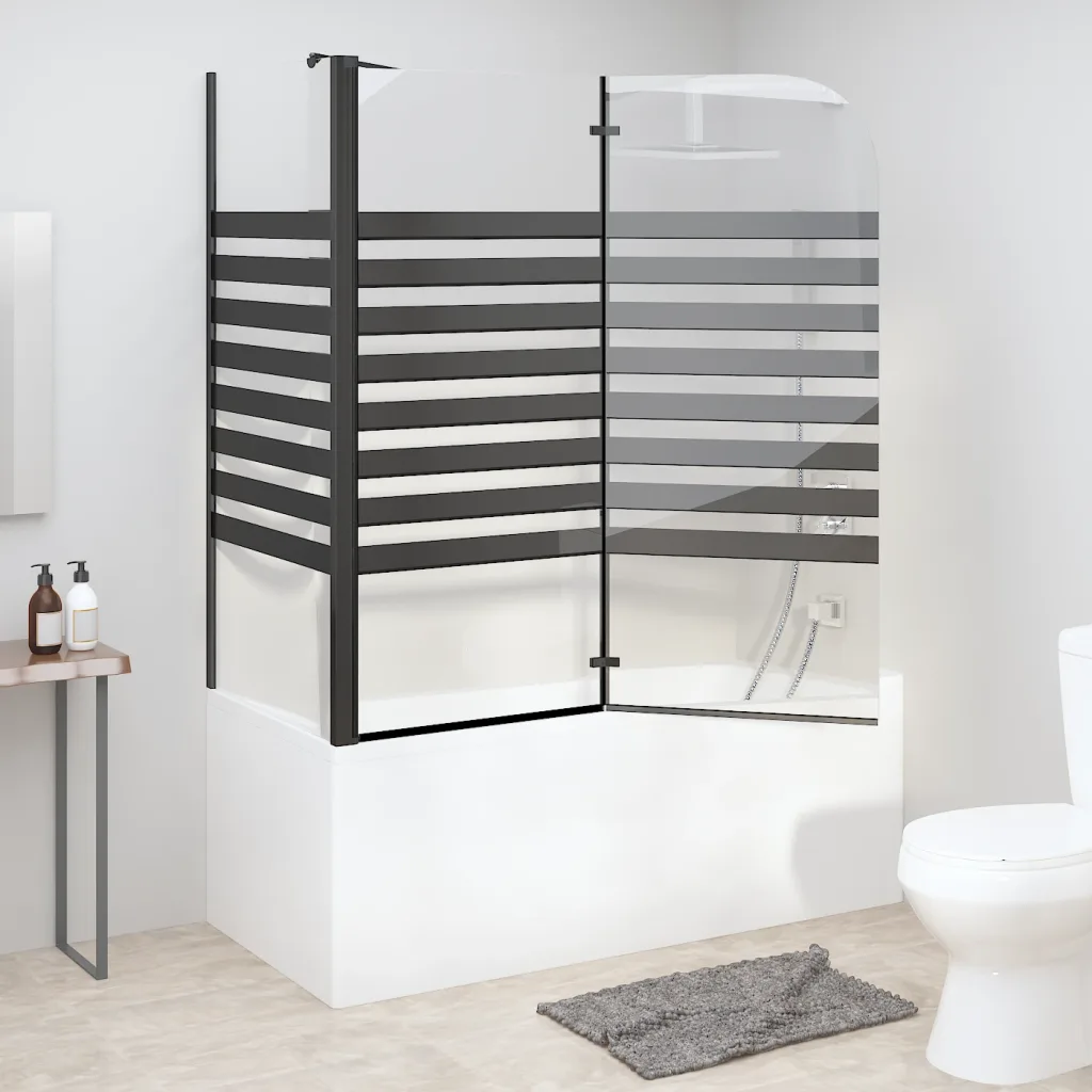 See must triibuline vanniümbris kaitseb vannitoa põrandat veepritsmete eest ning loob puhta ja selge joonega ilme. Kokkupandav konstruktsioon tagab mugava ligipääsu vannile, samas kui karastatud klaas ja alumiiniumraam pakuvad vastupidavust igapäevases kasutuses.