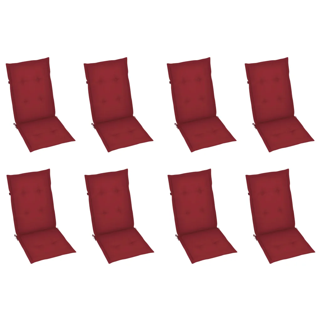 See 8-osaline kokkupandavate akaatsiapuidust aiatoolide komplekt patjadega loob aeda, terrassile või siseõuele mugava istumisala. Toolidel on reguleeritav seljatugi viies asendis, mis võimaldab leida sobiva istumis- või lõõgastusasendi. Veinipunased istmepadjad lisavad nii pehmust kui ka sooja värviaktsendi igasse väliruumis.