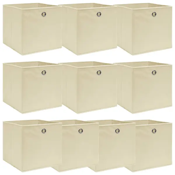 Kui soovid lihtsat viisi oma garderoobi ja riiulite korrastamiseks, pakub see 10-osaline hoiukastide komplekt paindlikku ja ruumisäästlikku lahendust. Ühtlane kreemjasvalge toon, vastupidav mittekootud kangas ja praktiline metallrõngas teevad kastidest praktilise lisandi igasse koju.