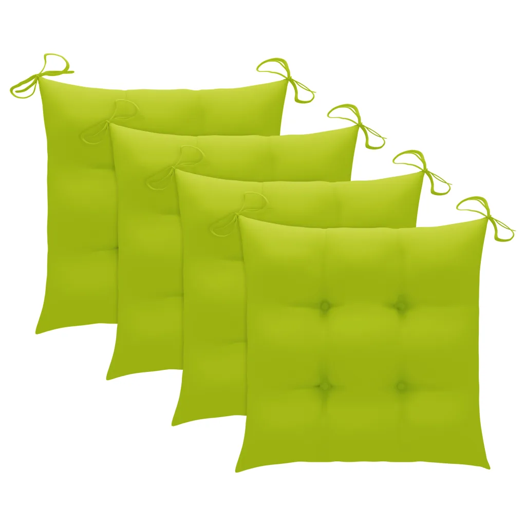 Need kokkupandavad tiigipuust aiatoolid on mõeldud kasutamiseks aias, terrassil või rõdul, pakkudes mugavat istumisvõimalust neljale. Mööbel on valmistatud vee baasil viimistlusega peenelt lihvitud tiigipuidust, mis on tuntud tugevuse ja ilmastikukindluse poolest ning sobib hästi välitingimustesse. Komplekti kuuluvad erkrohelised paksud istmepadjad, mis muudavad istumise pehmemaks ja mugavamaks.