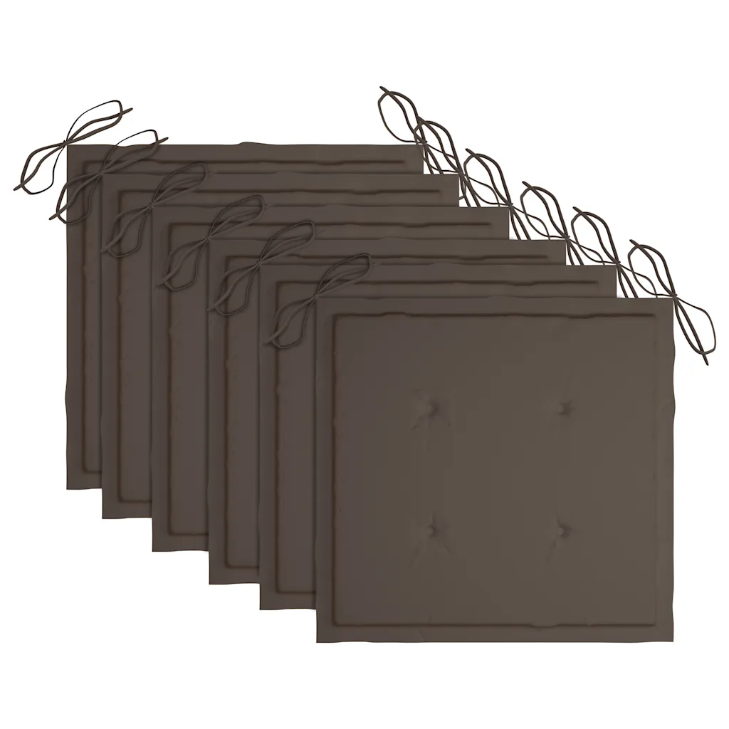 Lihtsa, ent elegantse disainiga kokkupandavad aiatoolid loovad mugava istekoha aias või teistel õuealadel. Komplektis on kuus tiigipuust tooli koos pehmete pruunikashallide istmepatjadega, mis võimaldavad õues olemist pikemalt nautida.