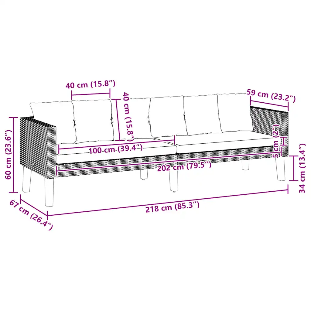 - Praktilised mõõtmed 218 x 67 x 60 cm (L x S x K) sobivad enamikule terrassidele ja aianurkadele.