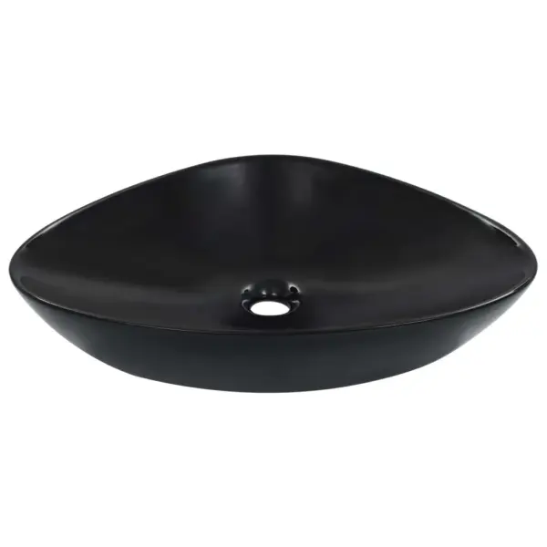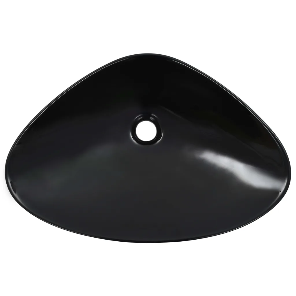 Kolmnurkne must keraamiline pealtpaigaldatav valamu on ajatu valik, mis sobib nii kaasaegsesse kui klassikalisemasse vannitoasisustusse. Kompaktsed mõõdud 58,5 x 39 x 14 cm võimaldavad kasutada seda erineva suurusega tööpindadel ja vannitoakappidel.
