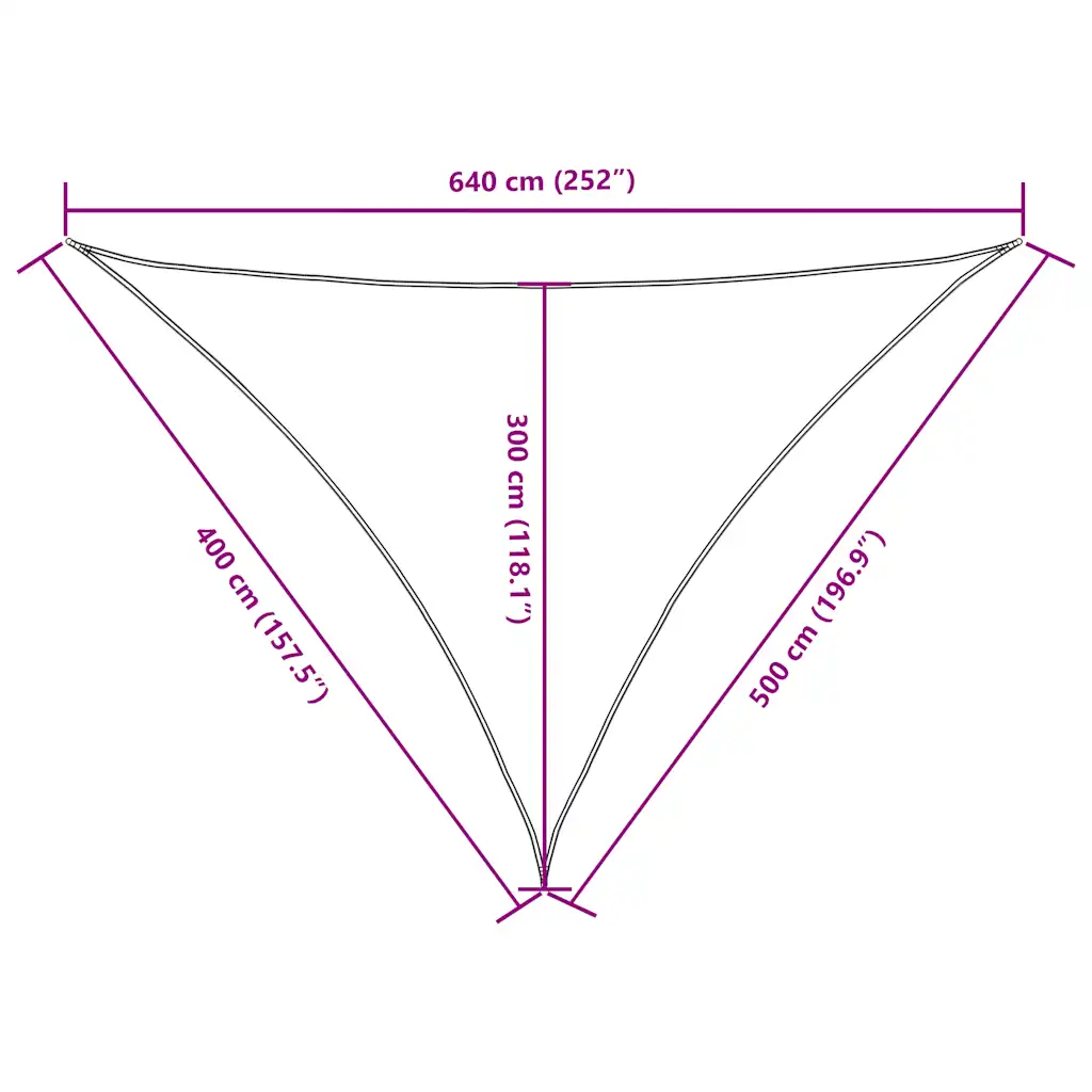 - Kolmnurkne kuju ja suurus 4 x 5 x 6,4 m võimaldab purje paigutada paindlikult erineva kujuga välialade kohale.