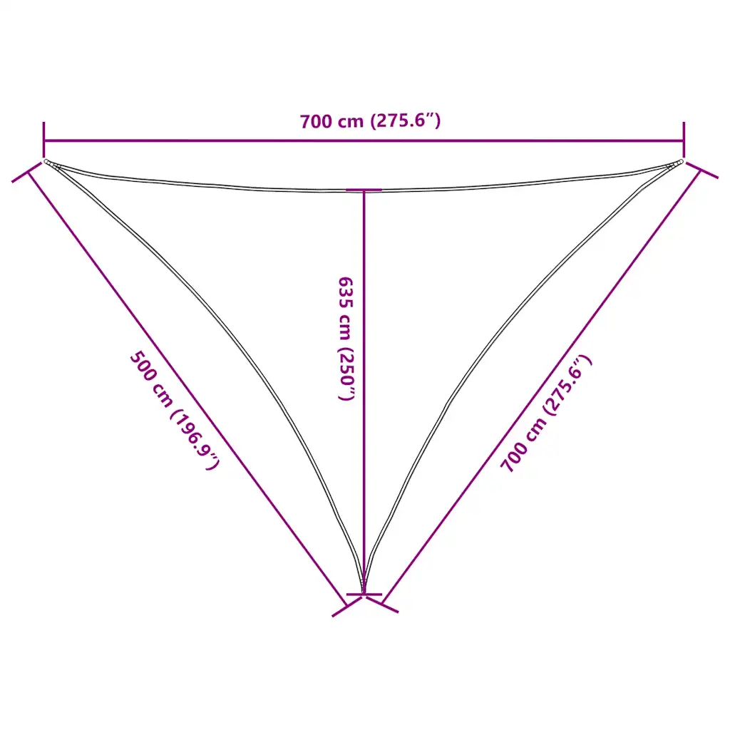 - Suur kolmnurkne pind 5 x 7 x 7 m katab märkimisväärse ala ja sobib suuremate välisruumide varjutamiseks.