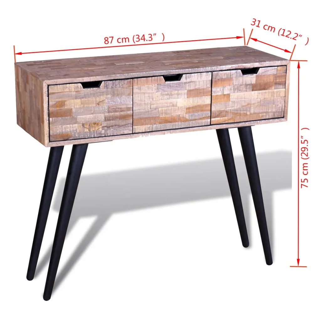Miks valida konsoollaud 3 sahtliga, taaskasutatud tiigipuit ja must metall, 87 x 31 x 75 cm?