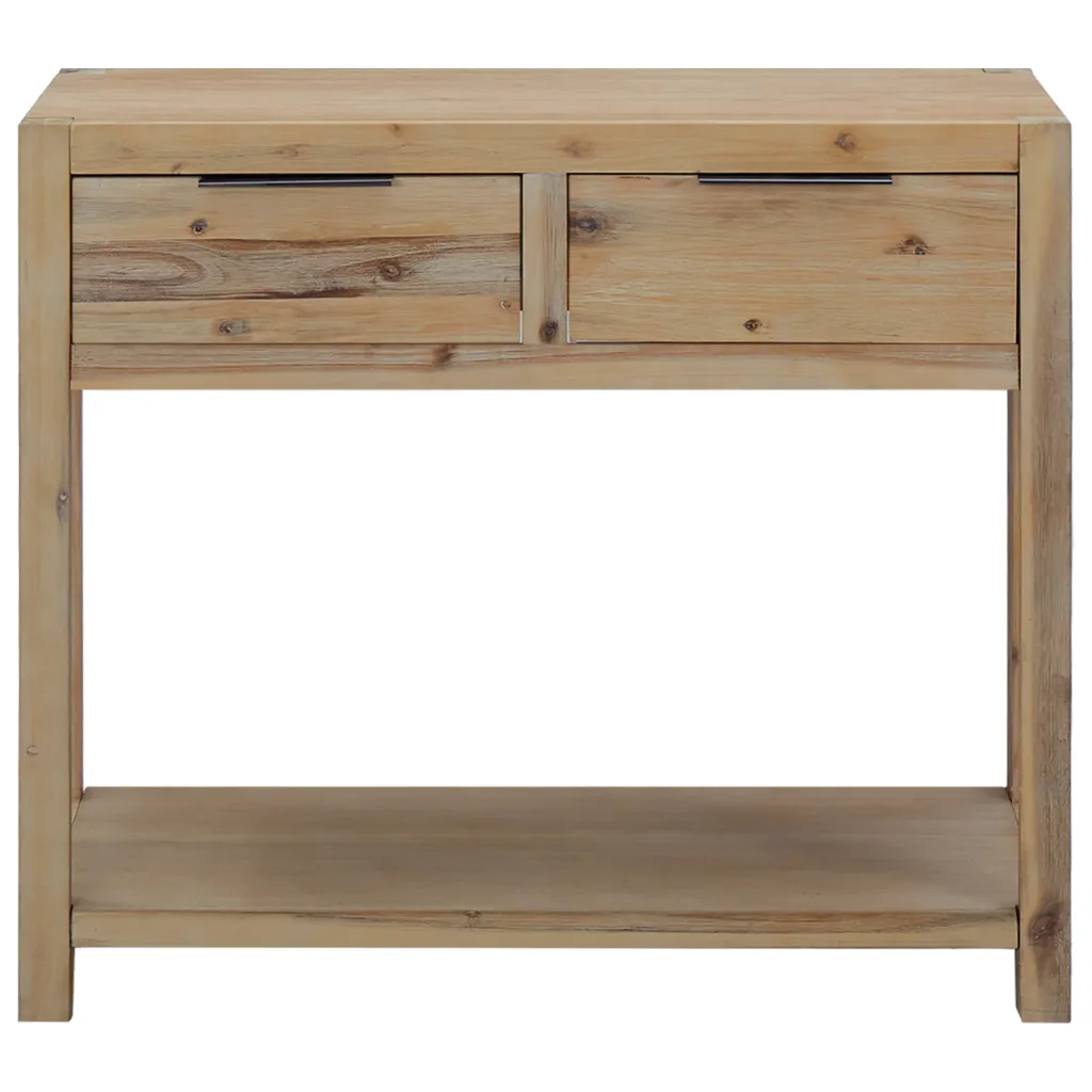 See harjatud viimistlusega akaatsiapuidust konsoollaud pakub kompaktset lisapinda ja funktsionaalset hoiuruumi. Vastupidav ülaplaat sobib dekoratiivesemete, puuviljakorvi või vaasi paigutamiseks, samal ajal kui sahtlid ja alumine riiul aitavad igapäevased väiksemad esemed käeulatuses hoida.