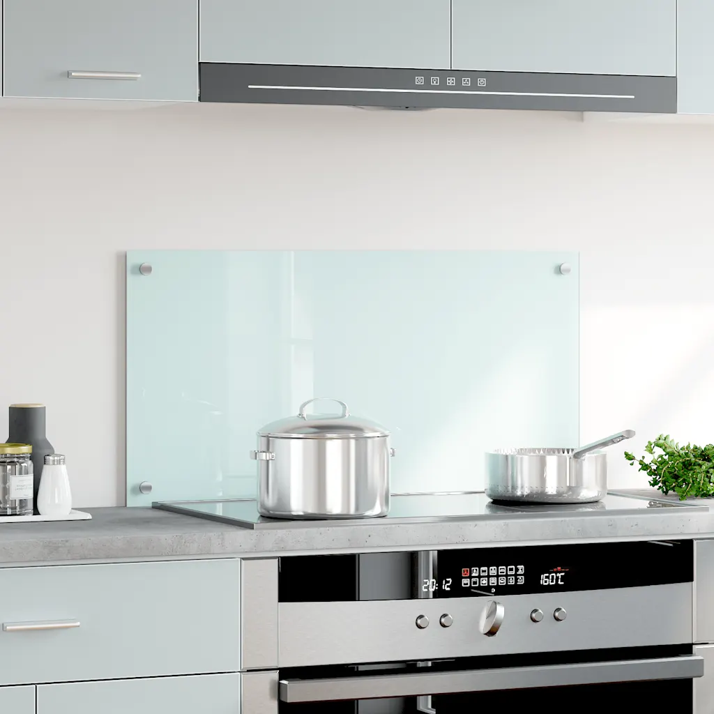 Valge karastatud klaasist köögi pritsmekaitse hoiab pliidi taga oleva seina puhtana ja kaitseb seda rasva ning toidupritsmete eest. Minimalistlik klaasplaat sulandub erinevatesse köögistiilidesse ning on samas lihtsasti puhastatav ja vastupidav igapäevasele kasutusele.