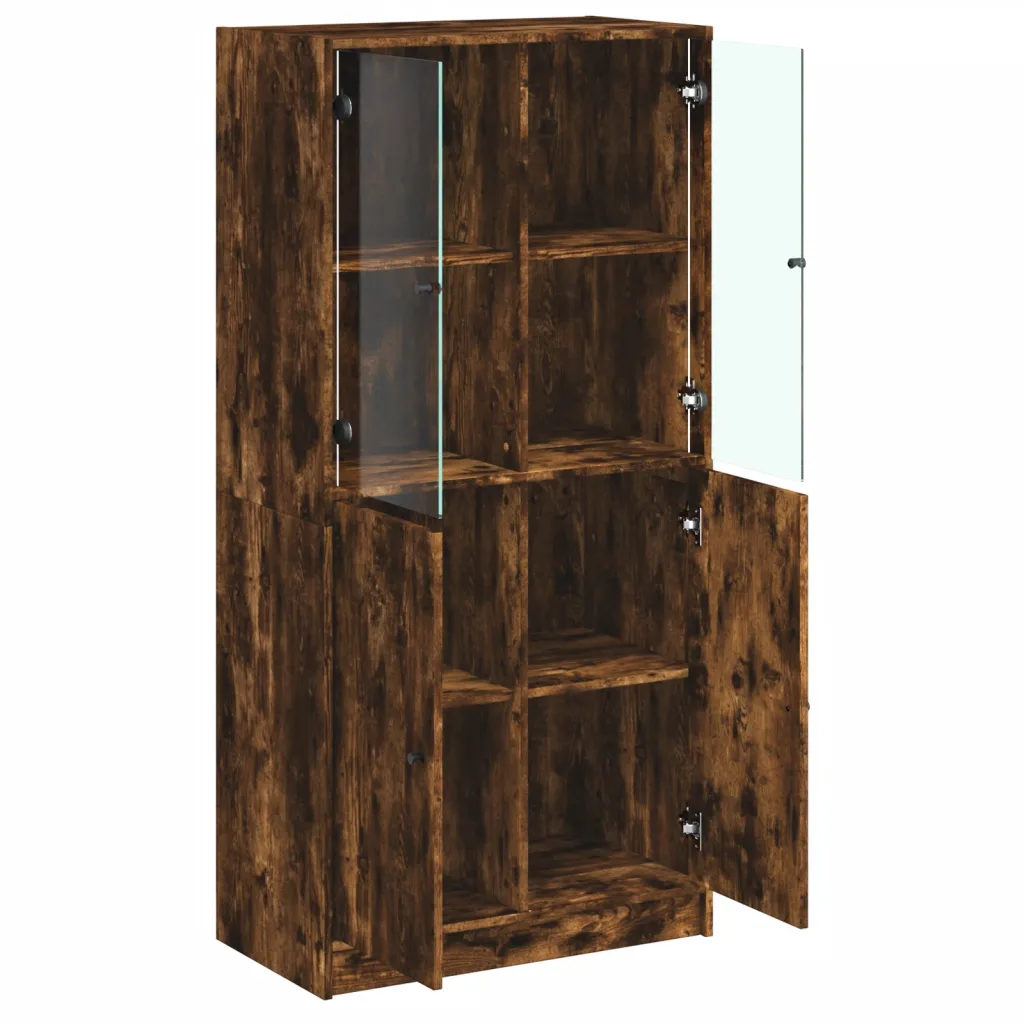 • Kõrge tehispuidust kapp suitsutatud tamme toonis, klaasuste ja alumise ustega kapiosaga.
