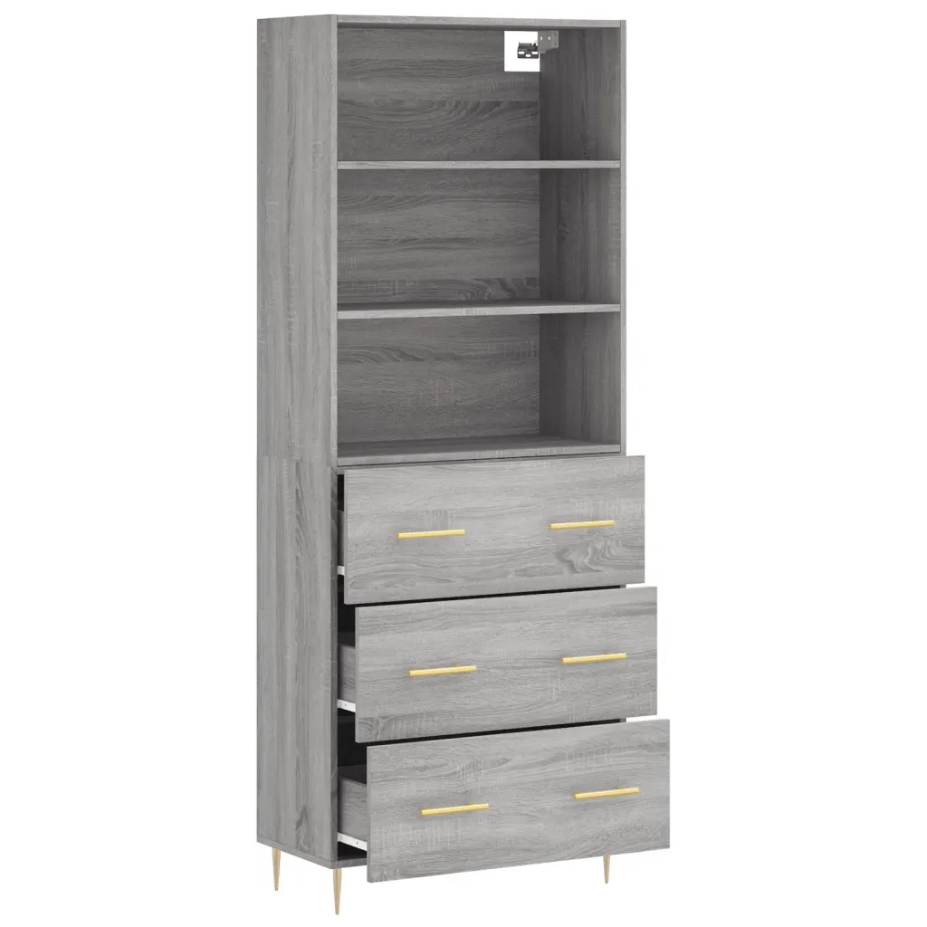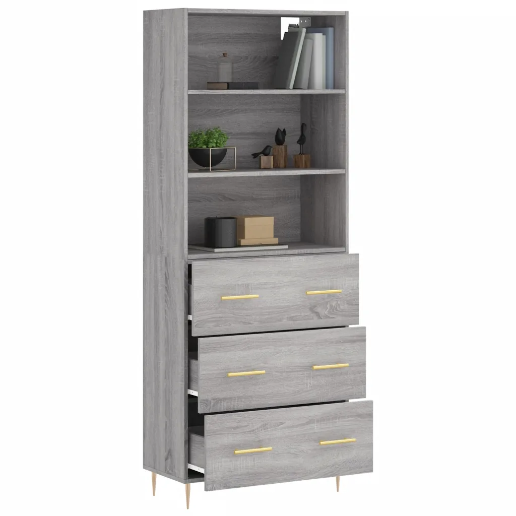See kõrge kapp halli Sonoma tamme viimistlusega aitab hoida elutoa, esiku või kodukontori korrastatuna. Avatud riiulite ja suletud sahtlite kombinatsioon võimaldab hoida nii igapäevaseid esemeid käeulatuses kui ka peita väiksemaid tarbeid tolmu eest.