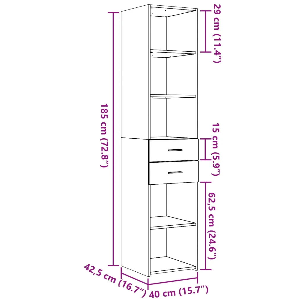 • Ruumisäästlikud mõõdud 40 x 42,5 x 185 cm (L x S x K) võimaldavad kappi paigutada ka kitsamatesse kohtadesse.