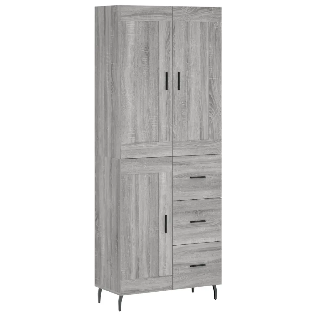 Kõrge kapp halli Sonoma tamme viimistlusega korrastatud hoiuruumiks