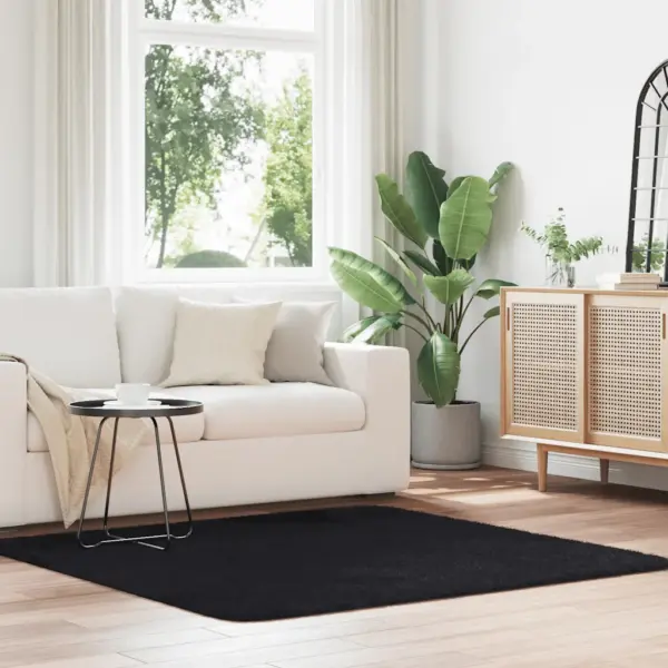 Must shaggy vaip NAVARRA mõõdus 160 x 160 cm toob ruumi visuaalset sügavust ja hubast tunnet. Tänu 100% polüestrist pealispinnale on vaip vastupidav, mugav jalge all ja sobib hästi igapäevasesse kasutusse elutoas, magamistoas või kodukontoris.
