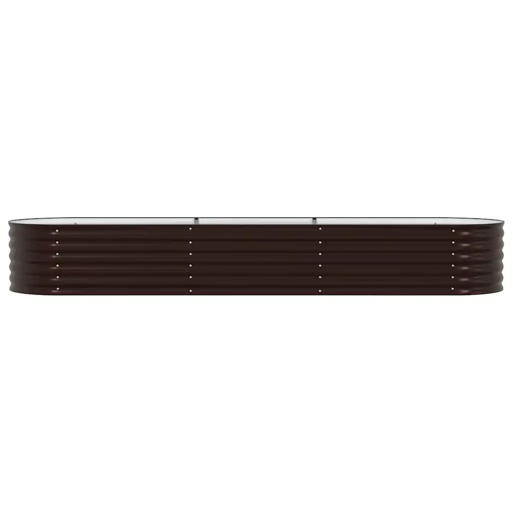 See pruunist terasest kõrge peenar loob selge ja korrastatud istutusala, mis sobib nii aeda kui terrassile. Piklik kuju mõõtudega 320 x 80 x 44 cm pakub rohkelt ruumi ürtidele, köögiviljadele ja lilledele, aidates samal ajal hoida mulla ja taimed ühes kompaktses lahenduses. Vastupidavast terasest konstruktsioon on mõeldud välitingimustesse ja talub igapäevast kasutust läbi aastaaegade.