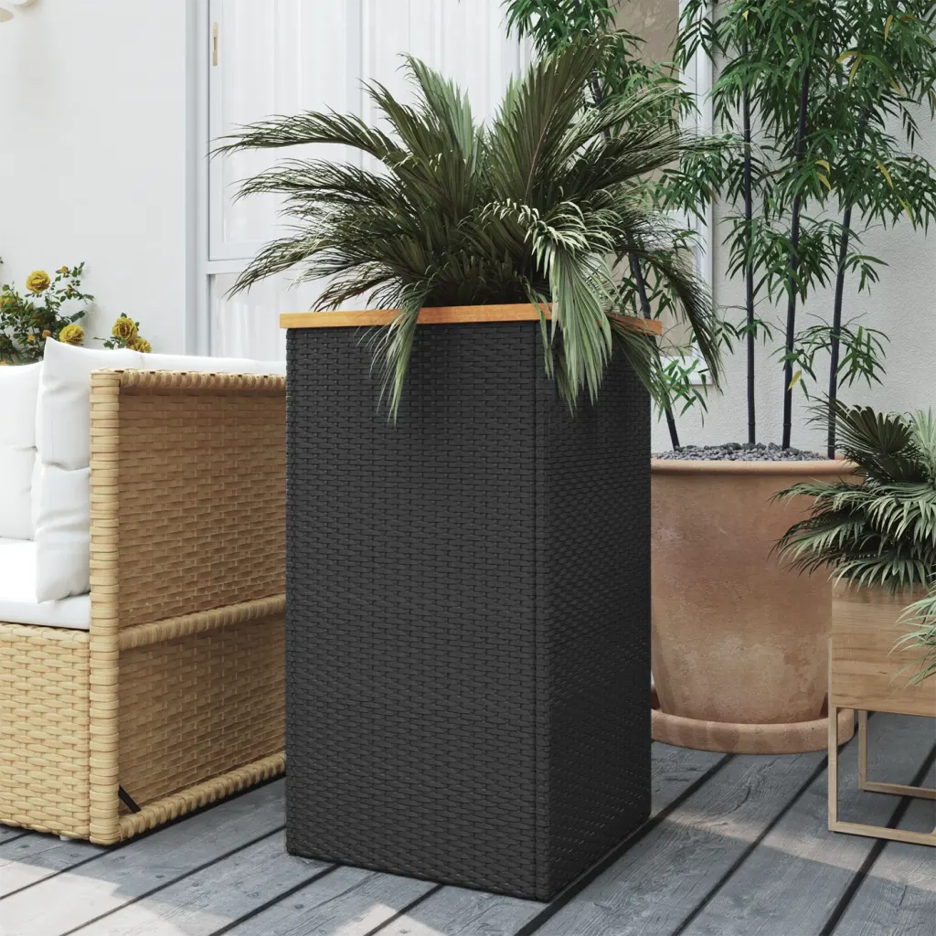 See kõrge polürotangist taimekast aitab luua korrastatud ja pilkupüüdva roheluse rõdul, terrassil, aias või toas. Ilmastikukindel PE-rotang, tugev terasraam ja toekas akaatsiapuit moodustavad vastupidava lahenduse, mis mahutab rohkelt mulda ning sobib nii dekoratiivsete lillede kui ka ürtide kasvatamiseks.