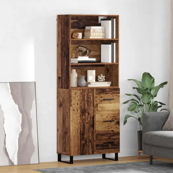 See kõrge riiulkapp on nutikas lahendus, kui soovid ühte mööbliesemesse koondada nii avatud riiulid kui suletud panipaiga. Vana puidu toonis viimistlus loob sooja ja iseloomuliku ilme, mis sobitub erinevatesse sisustusstii­lidesse alates modernsest kuni industriaalni. Tänu kompaktsetele mõõtudele 69,5 x 34 x 180 cm mahub kapp mugavalt ka väiksematesse ruumidesse, pakkudes samas ohtralt hoiuruumi.