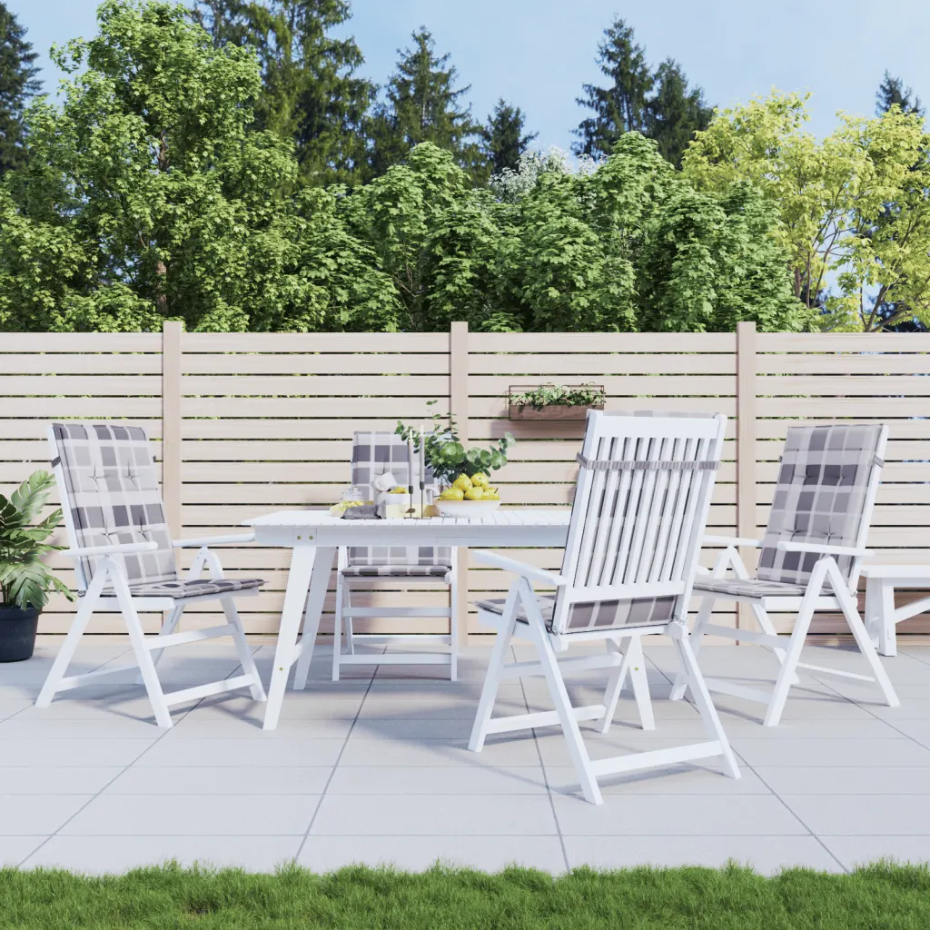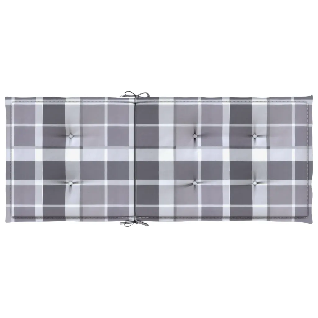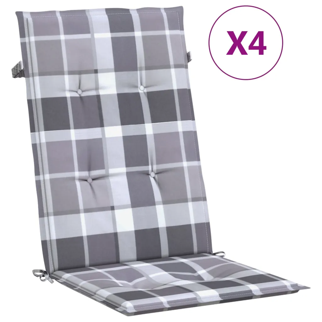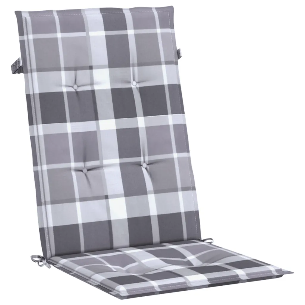 - 4 x kõrge seljatoega toolipadi, mõõtmetega 120 x 50 x 3 cm, halli ruudumustriga vetthülgava polüesterkattega.