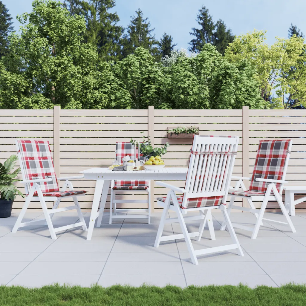 Need kõrge seljatoega toolipadjad toovad lisamugavuse aia- ja terrassitoolidele ning kaitsevad istet. Punane ruudumuster lisab õuealale värvi ja hubasust, samal ajal kui vetthülgav polüesterkangas sobib hästi muutlikku ilmastikku.