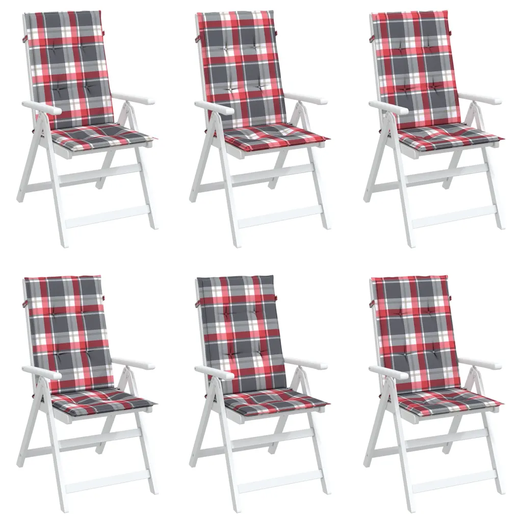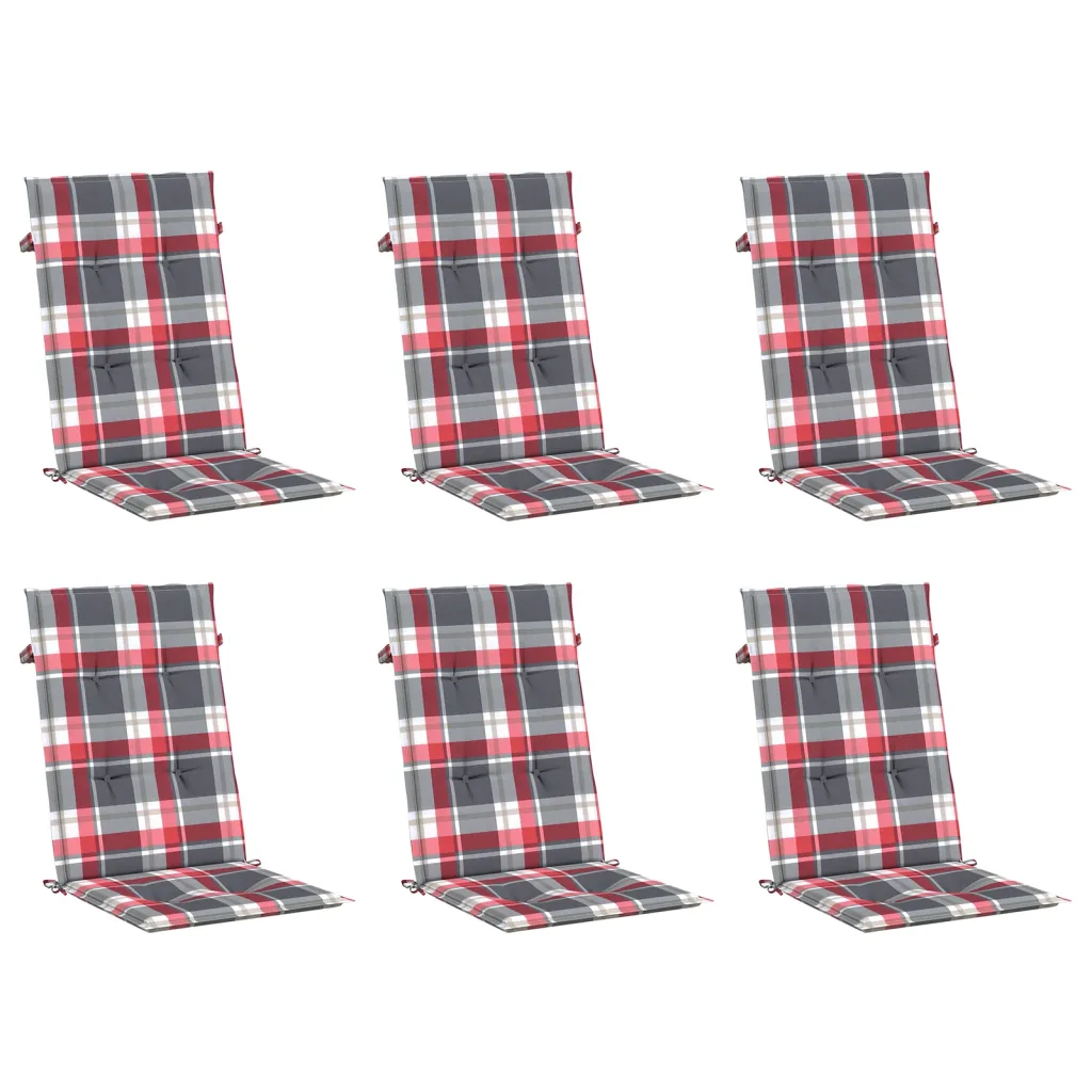 Need kõrge seljatoega toolipadjad värskendavad teie aia- või terrassimööbli ilmet ning lisavad mugavust ka siseruumides. Vetthülgav polüesterkangas ja pehme vaht- ning kiudtäidis pakuvad meeldivat tuge nii lühemaks istumiseks kui ka pikemaks lõõgastumiseks. Komplektis on 6 punase ruudumustriga patja, mis on mõeldud kasutamiseks kõrge seljatoega toolidel.