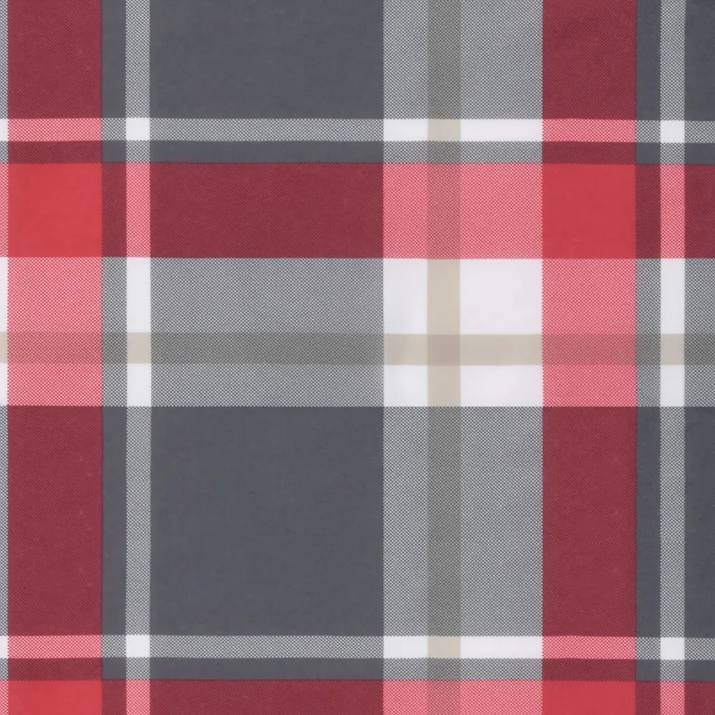 - 6 x kõrge seljatoega toolipadi, 120 x 50 x 3 cm (P x L x paksus), punase ruudumustriga, vetthülgavast 100% polüestrist kangas