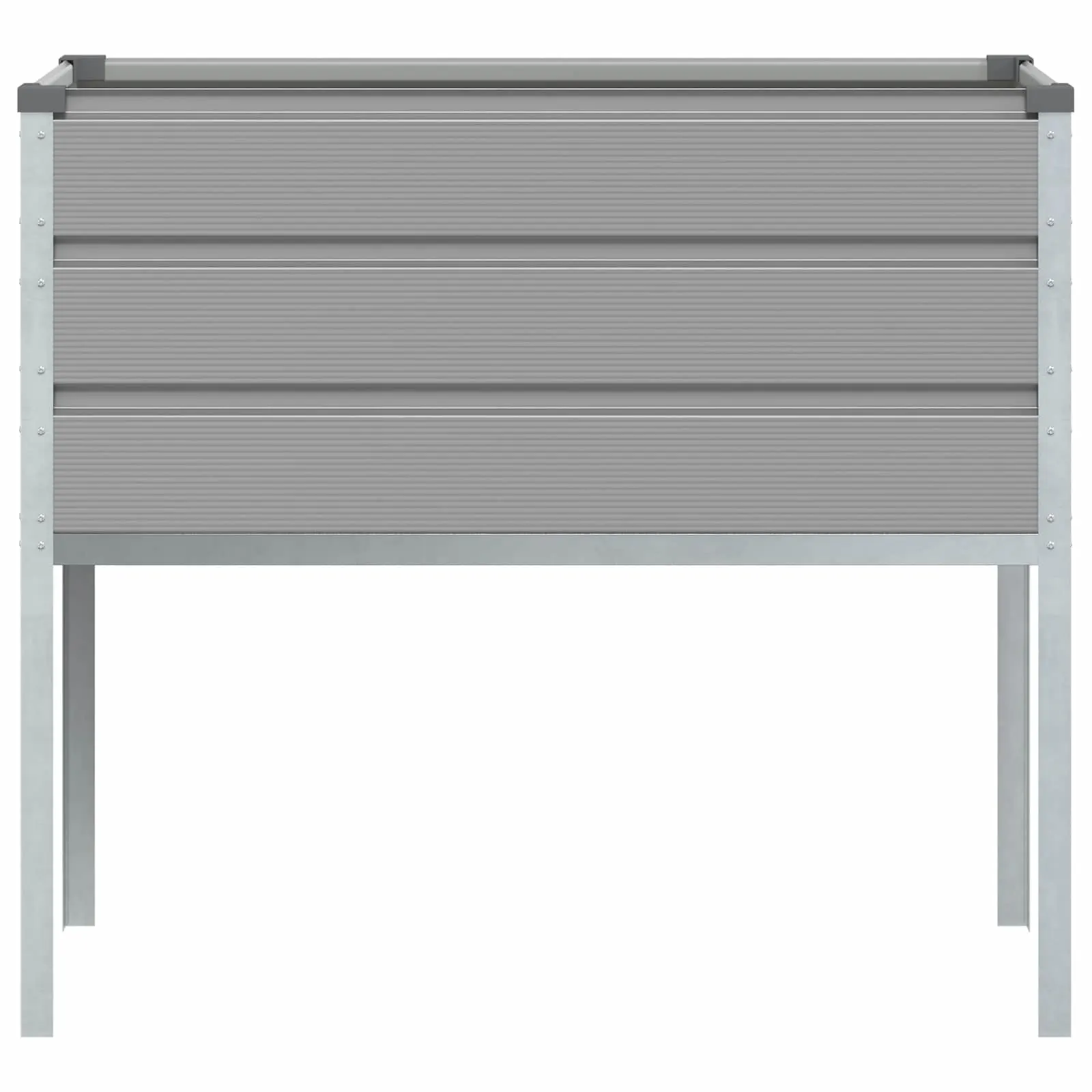 Komplektis on üks helehall tsingitud terasest taimekast mõõtudega 100 x 45 x 90 cm koos kõigi vajalike kinnitusdetailidega kokkupanekuks.