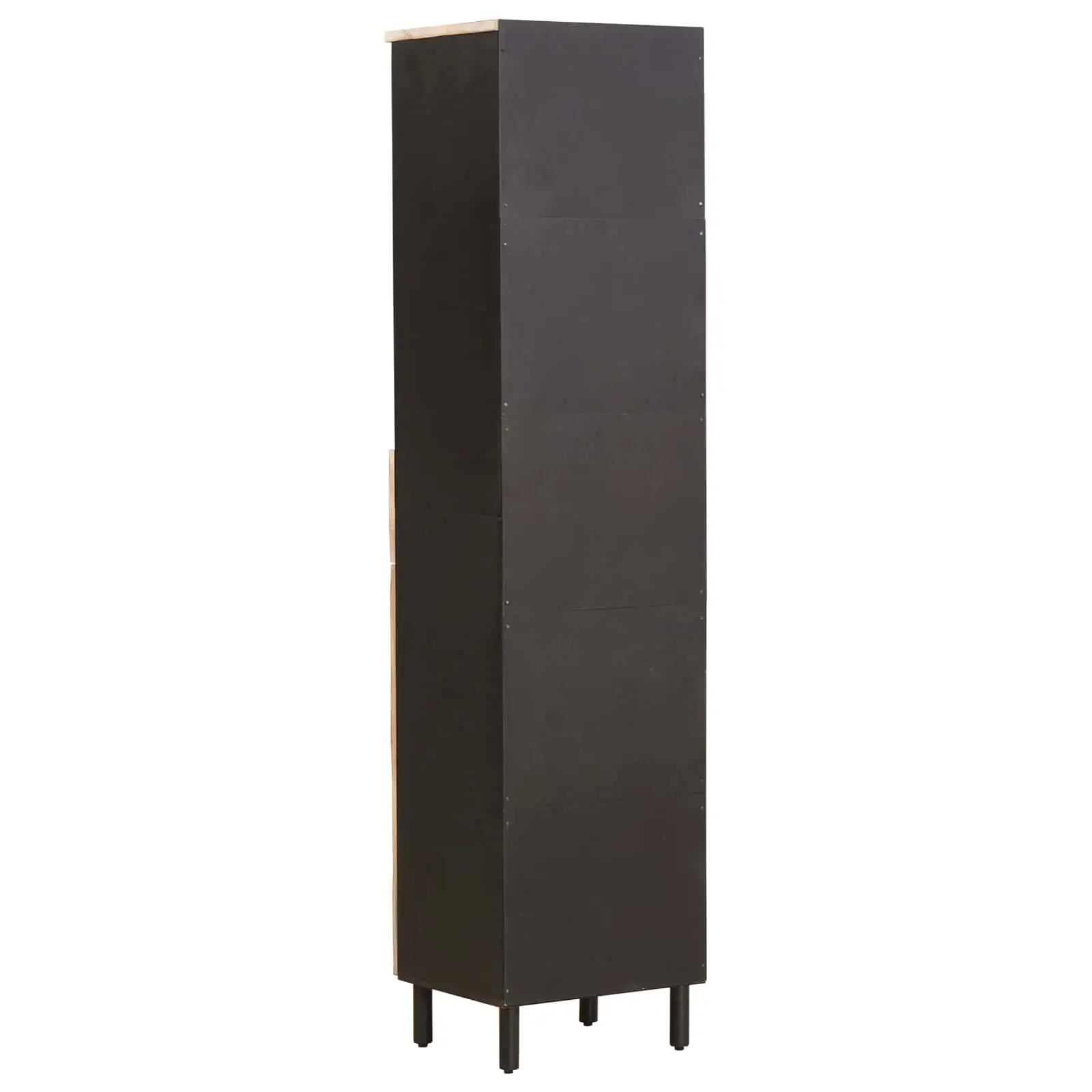 Kõrge ja kitsas mangopuidust vannitoakapp aitab hoida vannitoa tarvikud organiseeritult, võttes põrandapinnal vähe ruumi. Minimalistlik ristkülikukujuline vorm ja musta korpuse ning heleda mangopuidu kooslus sobivad hästi nii kaasaegsesse kui ka klassikalisemasse sisekujundusse. Vastupidavast täismangopuust valmistatud kapp pakub pika kasutusea ja loomulikult sooja ilme.