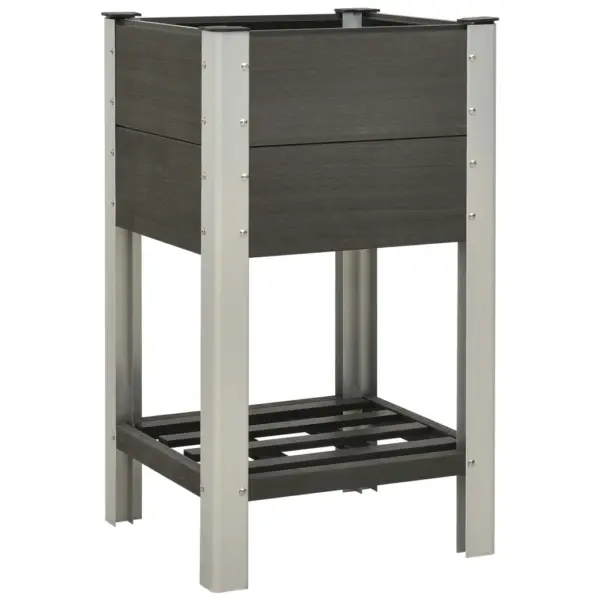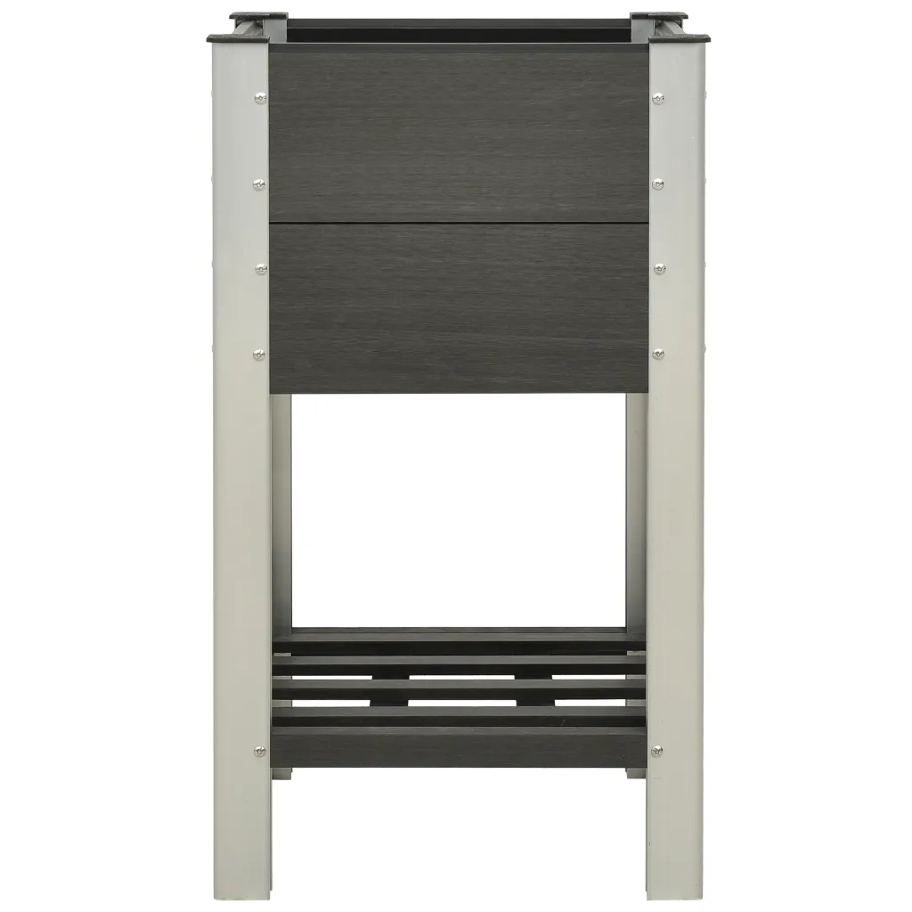See kõrgendatud aia taimelava riiuliga on praktiline lahendus taimede, köögiviljade, ürtide ja lillede kasvatamiseks aias, rõdul või siseõues. Vastupidav puidu ja plasti komposiitmaterjal WPC koos terasest ja alumiiniumist raamiga sobib hästi õues kasutamiseks ning hall toon sulandub neutraalselt eri stiilis välialadega.