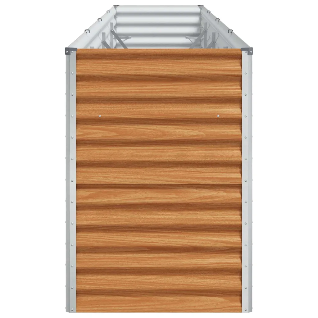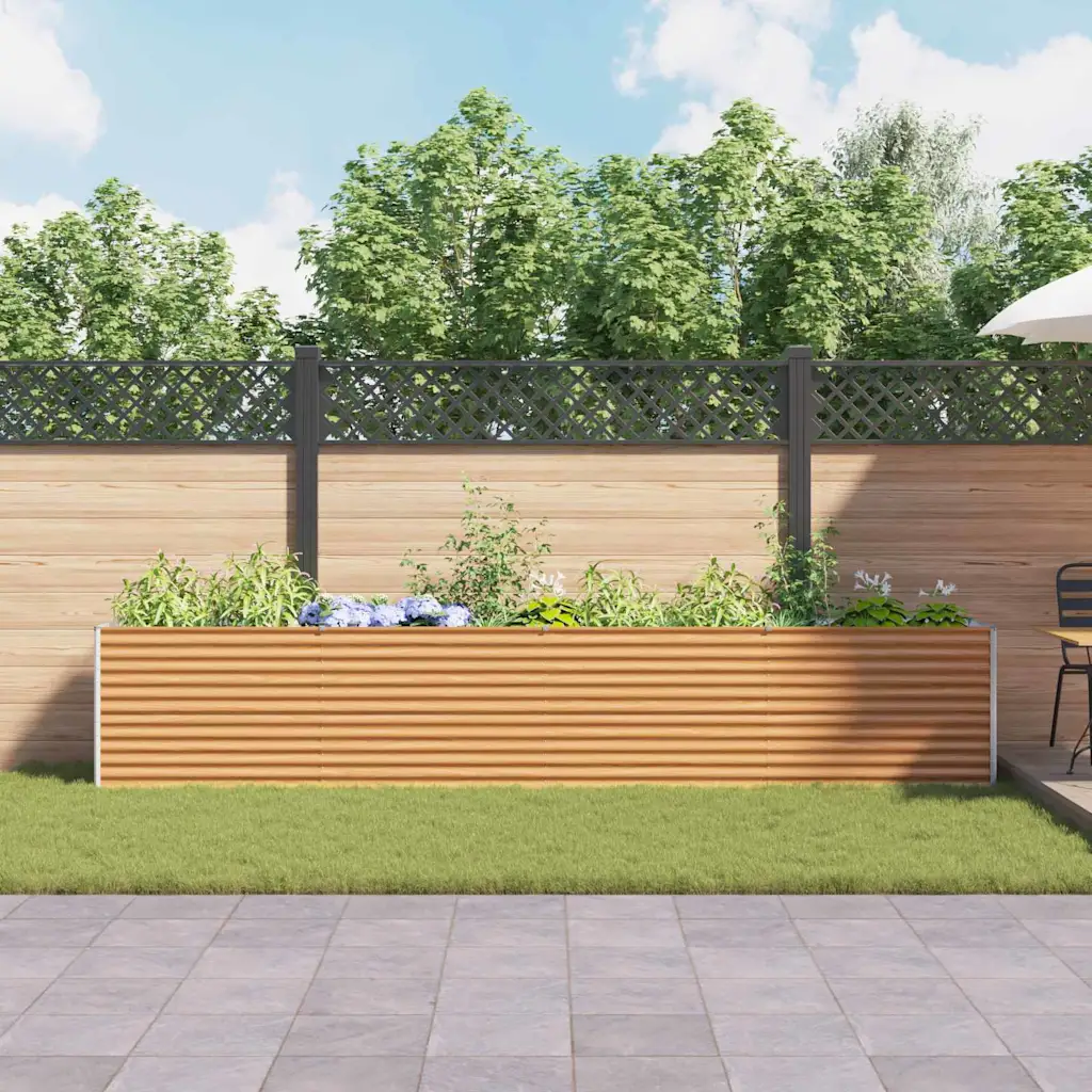 See kõrgendatud aiakast on valmistatud vastupidavast tsingitud terasest ning on helepruuni viimistlusega, mis sobitub erinevate aedade ja terrassidega. Pika vormiga kast pakub rohkelt ruumi taimedele mõõtmetega 390 x 50 x 68 cm, võimaldades luua korrastatud istutusala köögiviljadele, maitsetaimedele või lilledele. Avatud põhi toetab loomulikku drenaaži ja võimaldab taimedel jõuda aluspinnaseni.