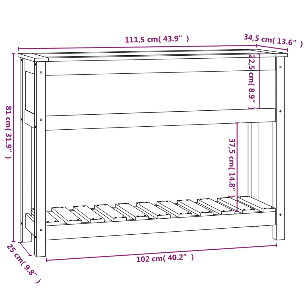 Kui soovite oma elutuppa, rõdule või verandale rohkem rohelust, on see kõrgendatud riiuliga taimekast praktiline ja ruumisäästlik lahendus. Ergonoomiline töökõrgus, sügav istutuskast ja lisariiul tarvikutele teevad taimede istutamise ja hoolduse mugavaks, samal ajal kui must männipuit lisab interjööri või välialale tagasihoidlikult modernse ilme.