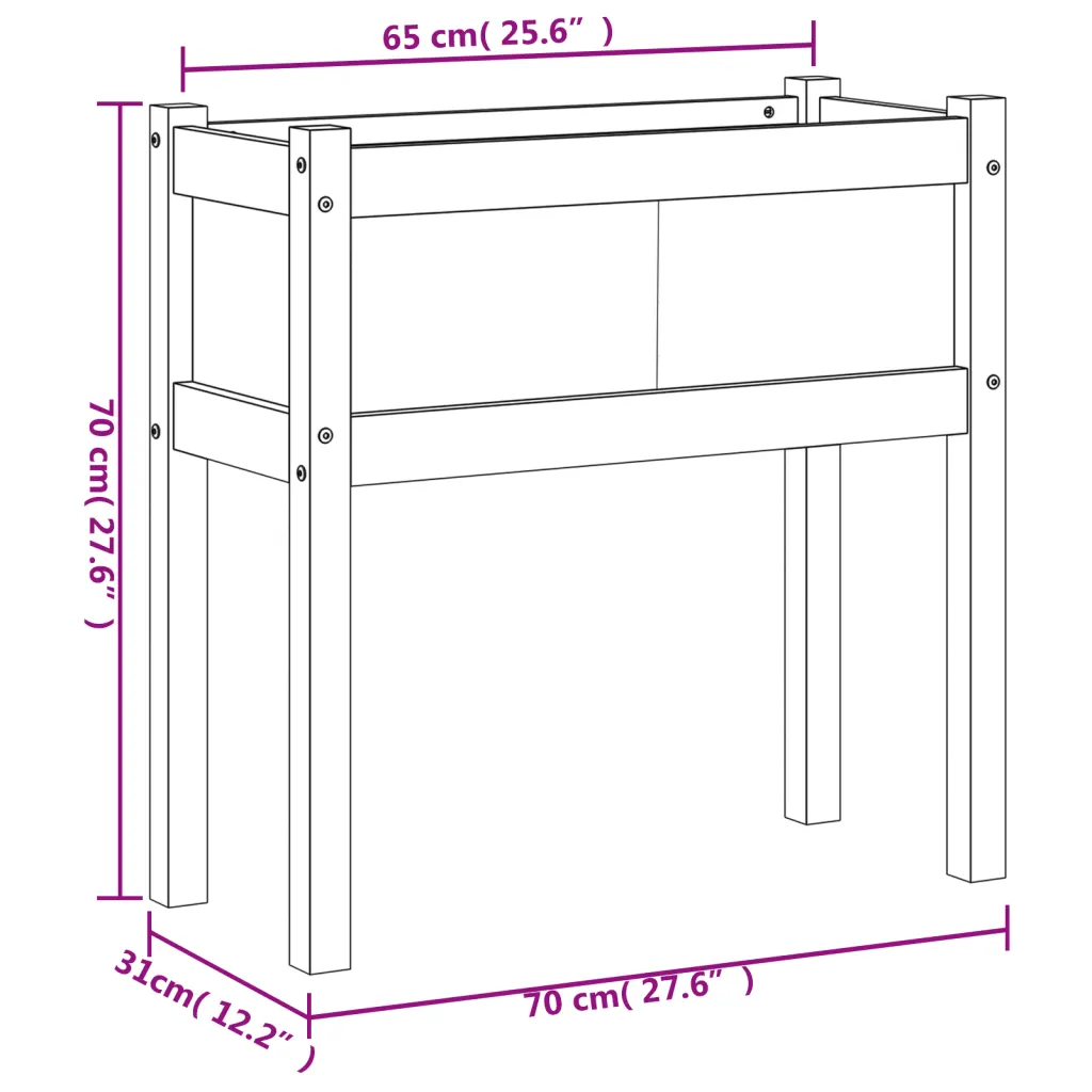 • Mugav kõrgus hoiab taimed 70 cm kõrgusel maapinnast, lihtsustades kastmise ja hoolduse toiminguid.