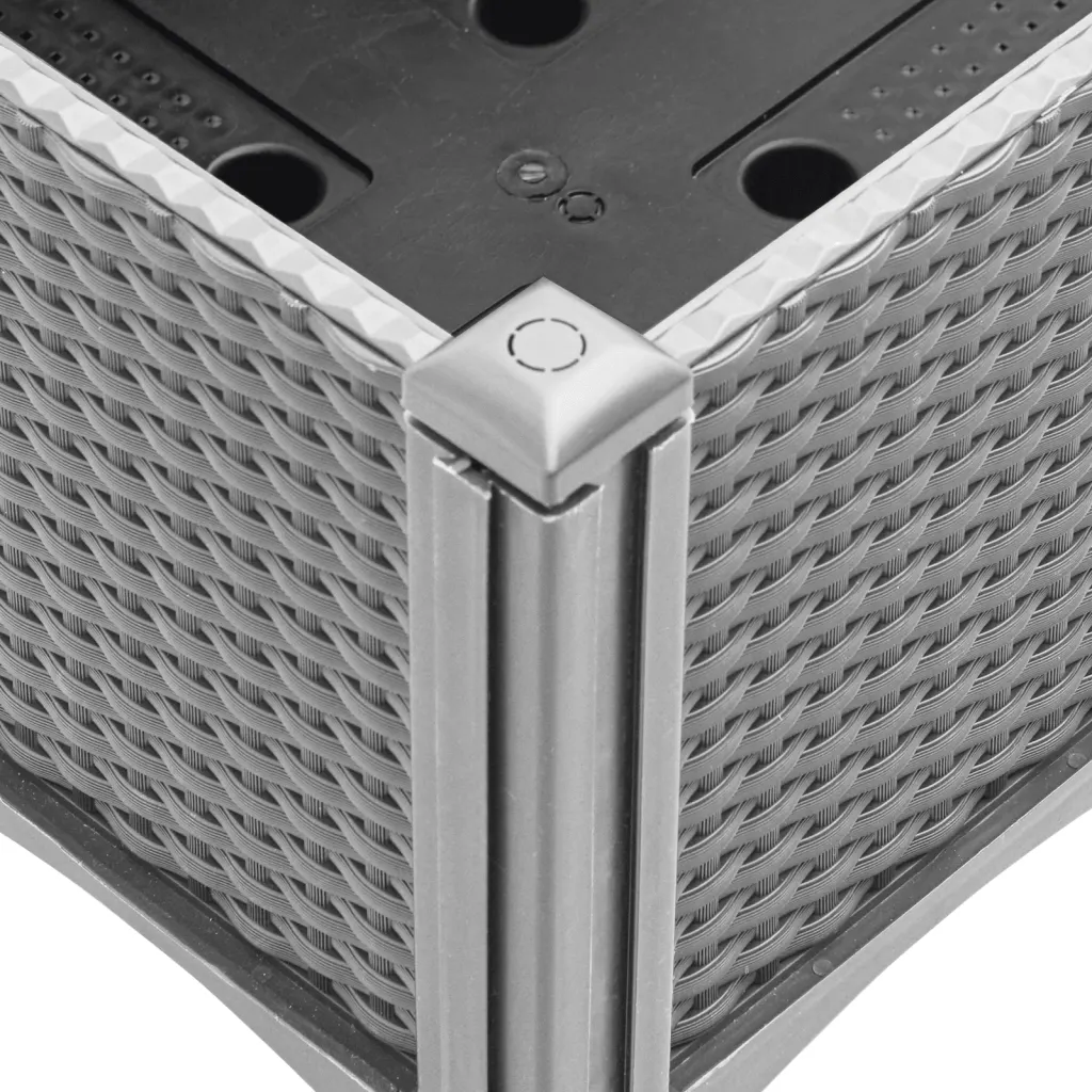 See kõrgendatud taimekast pakub praktilist lahendust, kui soovid taimi kasvatada piiratud pinnal. Ruumikas istutusala sobib köögiviljade ja lillede kasvatamiseks, samal ajal kui jalgadel konstruktsioon teeb hooldustöödeks kummardamise vähem vajalikuks. Helehall rotangimustriga viimistlus sobitub hästi nii rõdule, aeda või terrassile, lisades välialale korrastatud ilme.