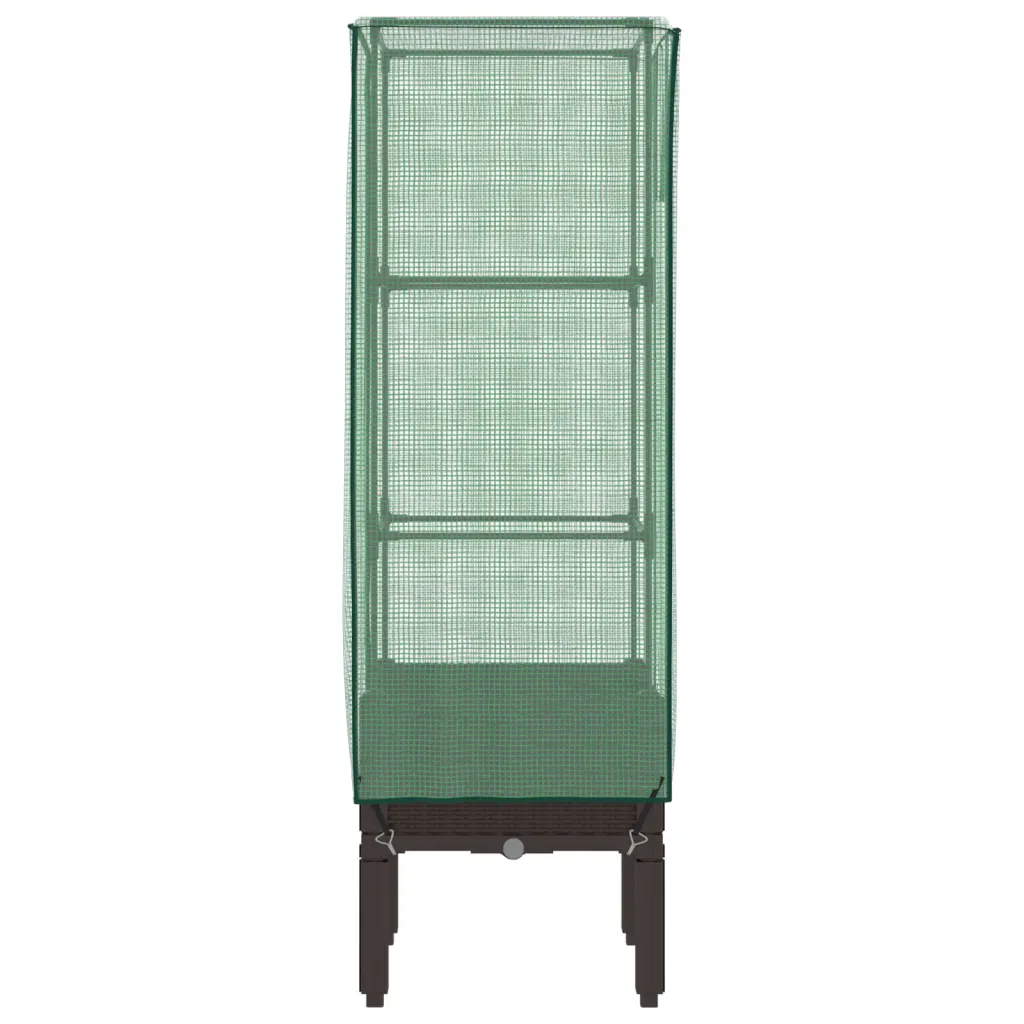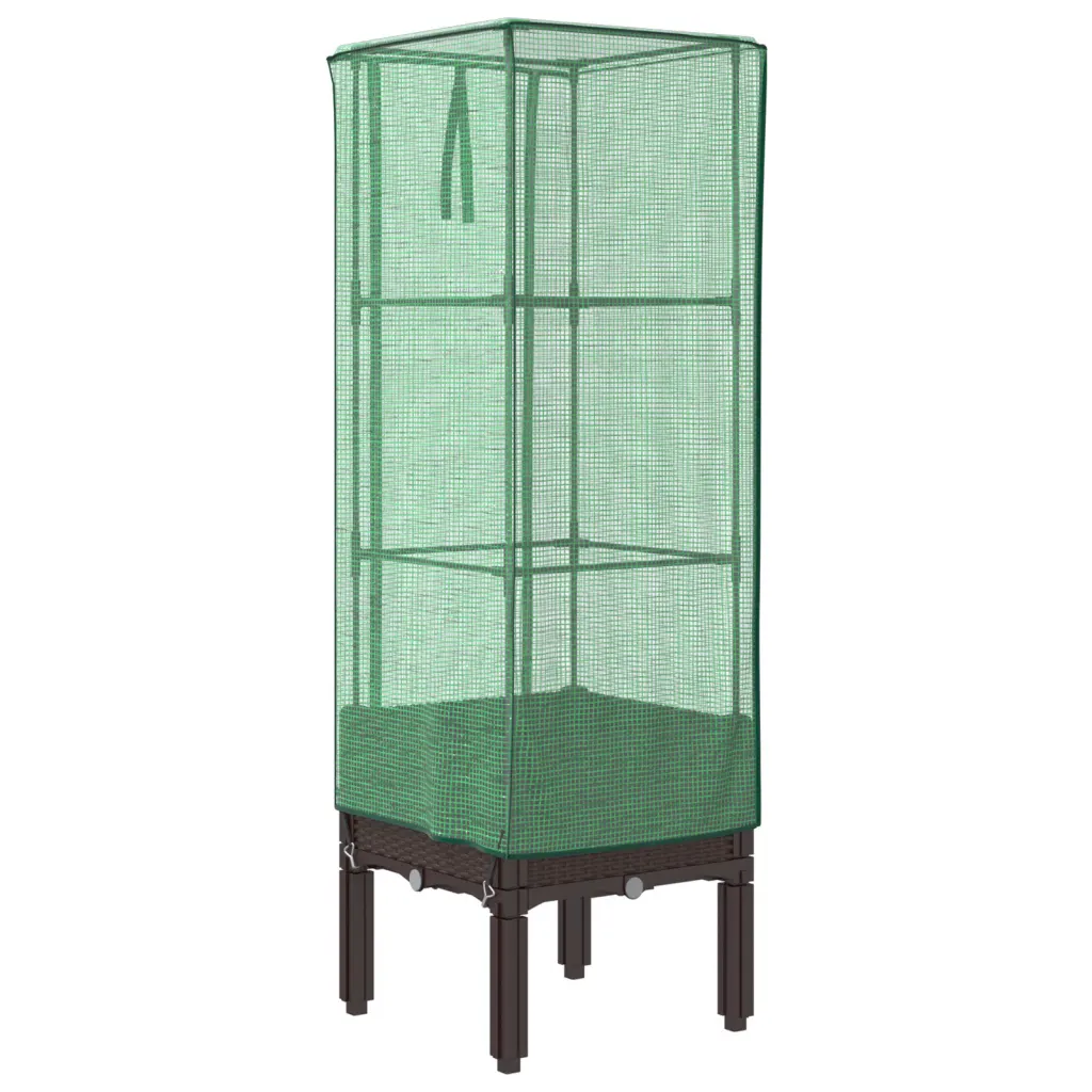 See rotangi välimusega kõrgendatud taimekast kasvuhoonekattega pakub rohkelt kasvuruumi ja loob taimedele kaitstud kasvukeskkonna. Pruunist PP-plastikust kast koos rauast toruraami ja vettpidava PE-kattega aitab hoida sobivamat temperatuuri, kaitsta taimi putukate, lindude ja väikeloomade eest ning sobib kasutamiseks nii aias, siseõues kui ka rõdul.