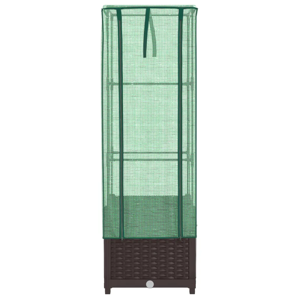 See rotangiimitatsiooniga kõrgendatud taimekast kasvuhoonekattega pakub kompaktset ja kaitstud kasvukohta köögiviljadele, maitsetaimedele ja lilledele. Tugev PP-kast koos rauast toruraamiga toetab ka ronitaimi, samal ajal kui vettpidav PE-kate aitab hoida ühtlasemat temperatuuri ning kaitseb taimi tuule, vihma ja kahjurite eest.