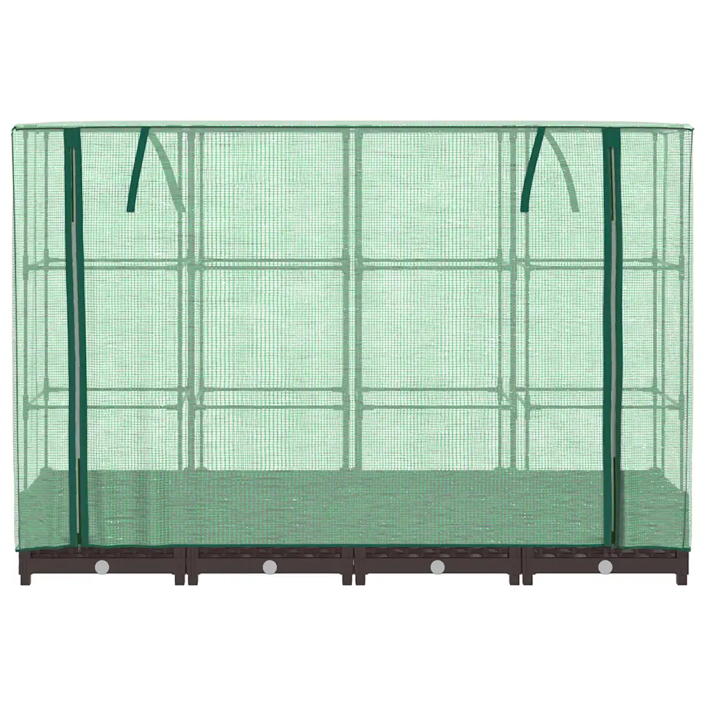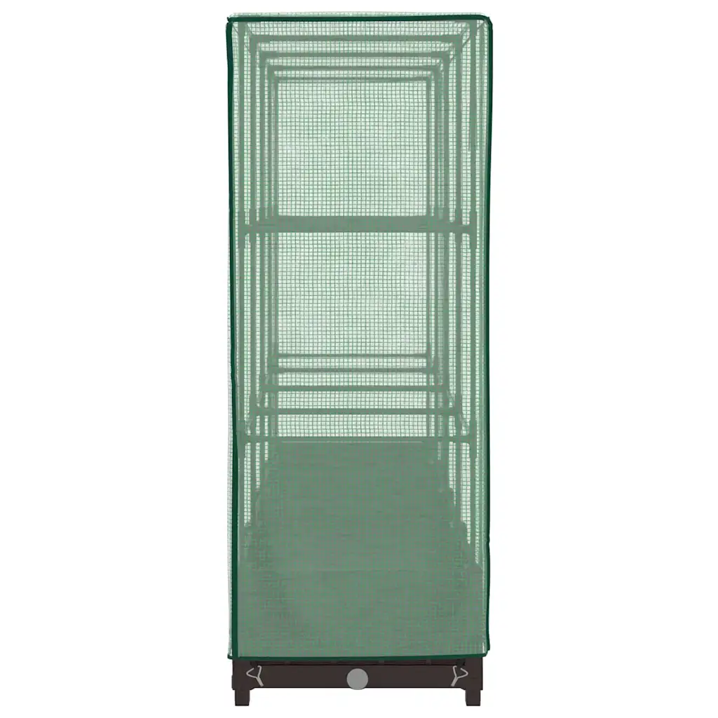 See kasvuhoonekattega kõrgendatud taimekast ühendab kompaktsed mõõdud ja suure kasvupinna, pakkudes taimedele tuule, vihma ja kahjurite eest kaitstud keskkonda. Pruun rotangijäljendiga viimistlus sobib hästi aedadesse, terrassidele ja rõdudele, lisades välialale korrastatud ja dekoratiivse ilme.