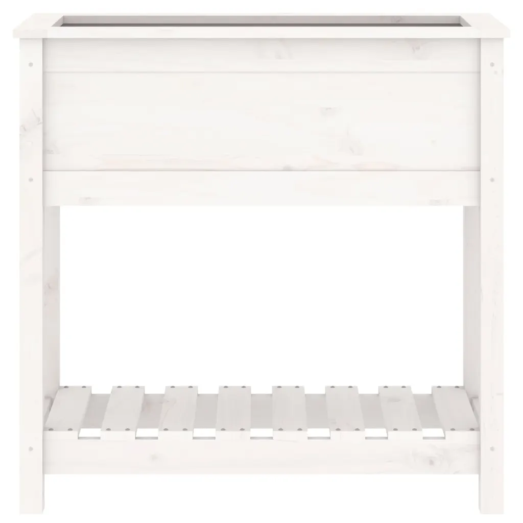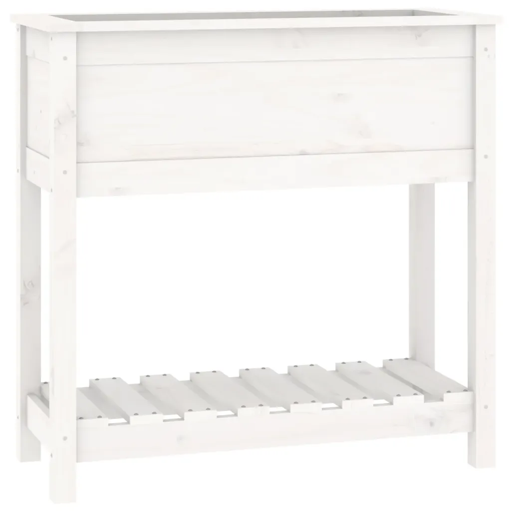 • 1 valge kõrgendatud taimekast integreeritud alumise riiuliga, valmistatud männipuidust