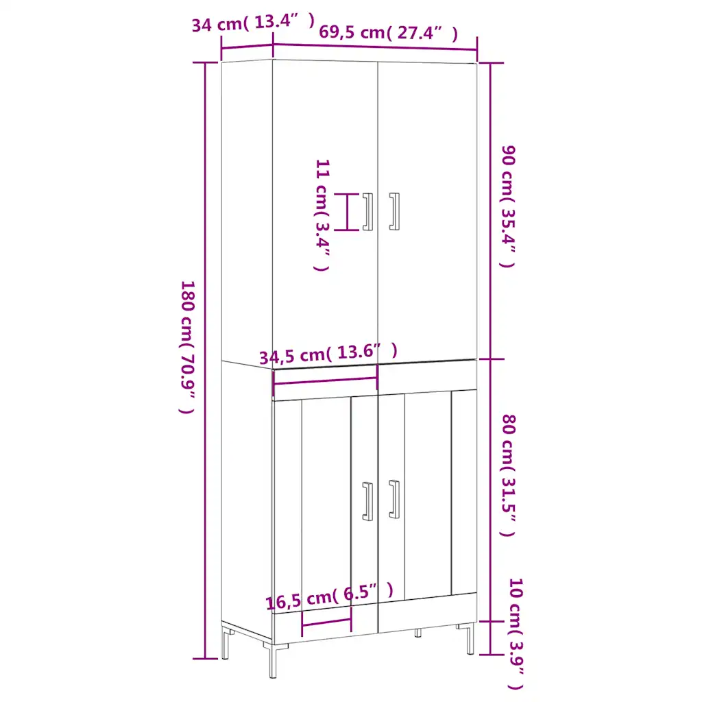 Betoonhall kõrgkapp mõõtudega 69,5 x 34 x 180 cm aitab hoida igapäevased esemed korrastatult ja silma alt ära. Tänu kitsale sügavusele sobib see eriti hästi väiksematesse elutubadesse, esikutesse või kontoritesse, pakkudes palju vertikaalset hoiuruumi ilma põrandapinda liigselt koormamata.