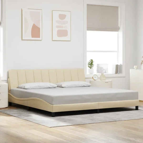 Hanko kangast voodiraam loob magamistuppa rahuliku ja modernse ilme ning pakub mugava aluse kuni 200 x 200 cm madratsile. Kreemjas polüesterkangas, laineline küljekujundus ja polsterdatud peats muudavad voodi ruumis visuaalseks keskpunktiks, samas kui komplekti kuuluv peatsipadi ja liistud tagavad igapäevase kasutuse jaoks mugavuse ja toe.