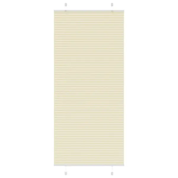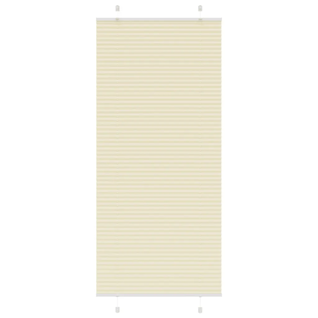 - Plisseeritud ruloo kreemjasvalge kangaga, kogulaius 85 cm ja kõrgus 200 cm.