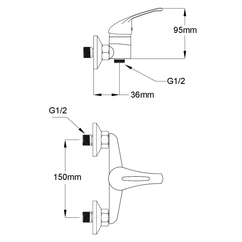 - Praktilised mõõdud – segisti mõõdud 10 x 10 x 18 cm ja torude keskvahe 150 mm sobivad standardsetele ühendustele.